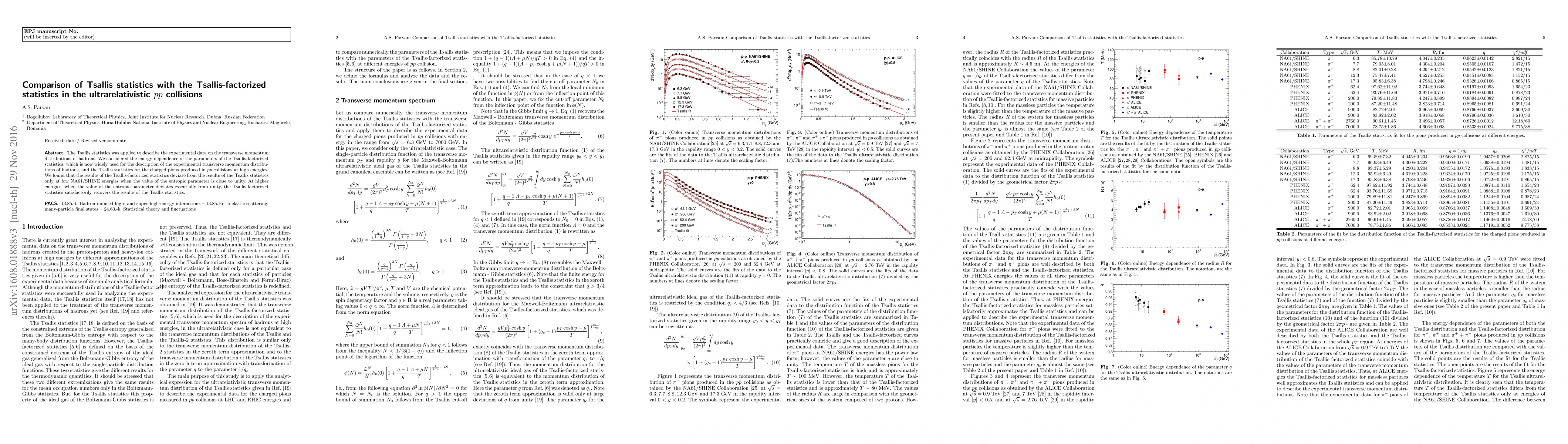 This paper compares the Tsallis statistics and Tsallis-factorized statistics in ultrarelativistic $pp$ collisions, finding that while they diverge at low energies, the Tsallis-factorized statistics aligns with Tsallis statistics at higher energies where the entropic parameter significantly deviates from unity.