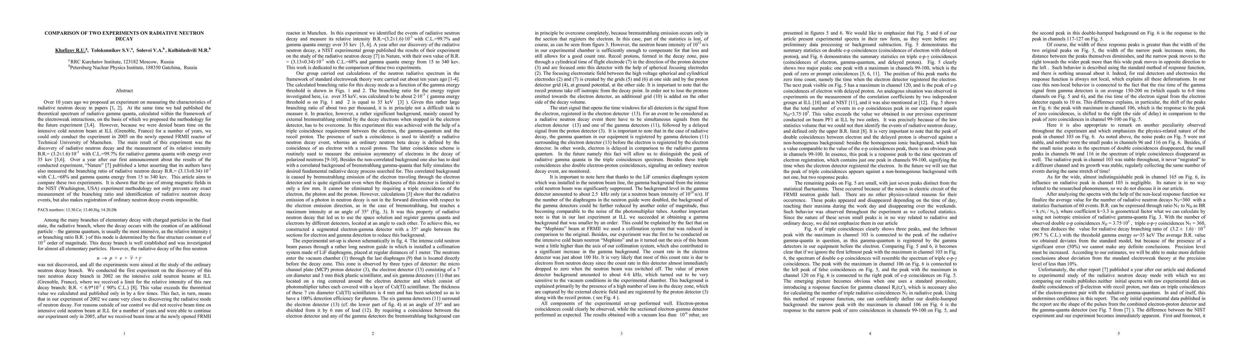 Over 10 years ago we proposed an experiment on measuring the characteristics of radiative neutron decay in papers [1, 2]. At the same time we had published the theoretical spectrum of radiative gamma quanta, calculated within the framework of the electroweak interactions, on the basis of which we proposed the methodology for the future experiment [3,4]. However, because we were denied beam time on the intensive cold neutron beam at ILL (Grenoble, France) for a number of years, we could only conduct the experiment in 2005 on the newly opened FRMII reactor of Technical University of Muenchen. The main result of this experiment was the discovery of radiative neutron decay and the measurement of its relative intensity B.R.= (3.2+-1.6)10-3 with C.L.=99.7% for radiative gamma quanta with energy over 35 kev [5,6]. Over a year after our first announcement about the results of the conducted experiment, "Nature" [7] published a letter asserting that its authors have also measured the branching ratio of radiative neutron decay B.R.= (3.13+-0.34)10-3 with C.L.=68% and gamma quanta energy from 15 to 340 kev. This article aims to compare these two experiments. It is shown that the use of strong magnetic fields in the NIST (Washington, USA) experiment methodology not only prevents any exact measurement of the branching ratio and identification of radiative neutron decay events, but also makes registration of ordinary neutron decay events impossible.