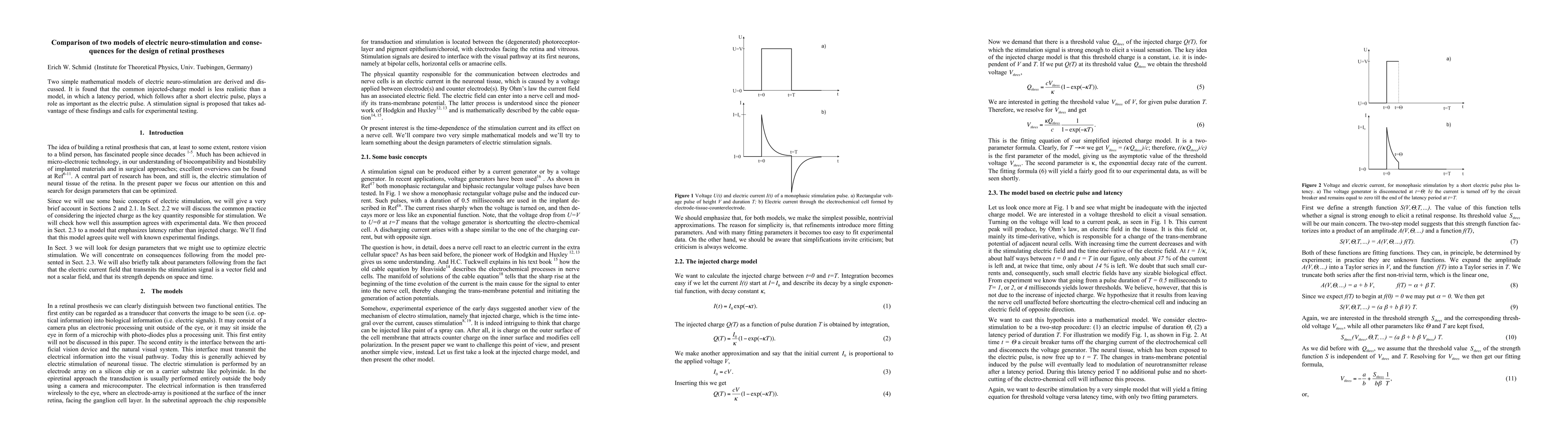 Two simple mathematical models of electric neuro-stimulation are derived and discussed. It is found that the common injected-charge model is less realistic than a model, in which a latency period, which follows after a short electric pulse, plays a role as important as the electric pulse. A stimulation signal is proposed that takes advantage of these findings and calls for experimental testing.