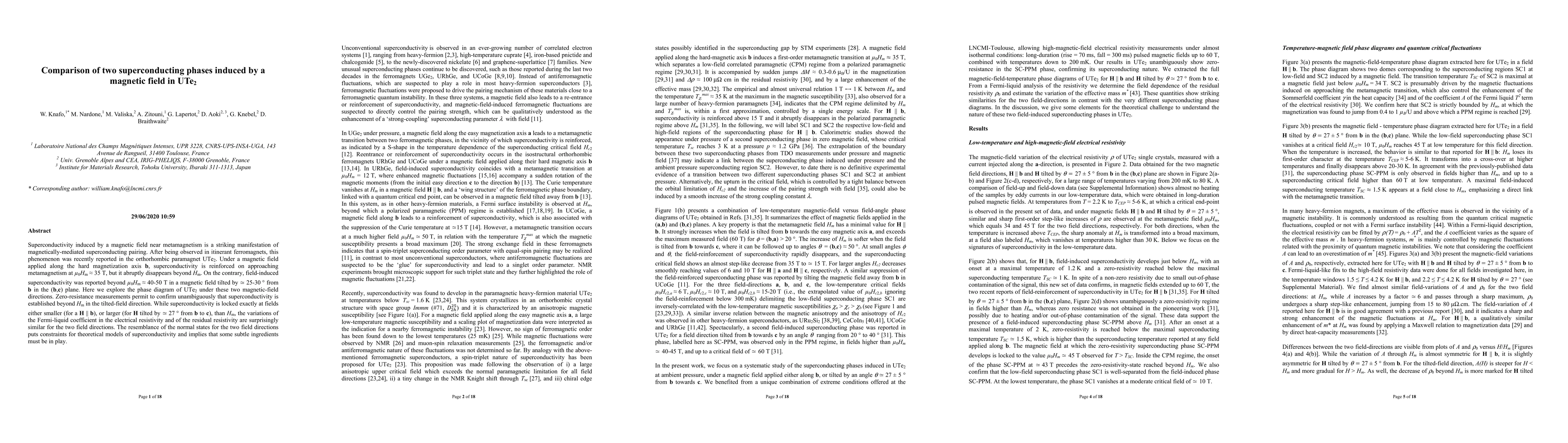 This paper investigates the magnetic-field-induced superconductivity in UTe$_2$, revealing two distinct superconducting phases. Near metamagnetism, superconductivity strengthens but vanishes beyond a critical field, while a different superconducting phase emerges at higher fields with a tilted magnetic field. The study highlights the similarity in the normal state properties for both field directions, challenging existing theoretical models.
