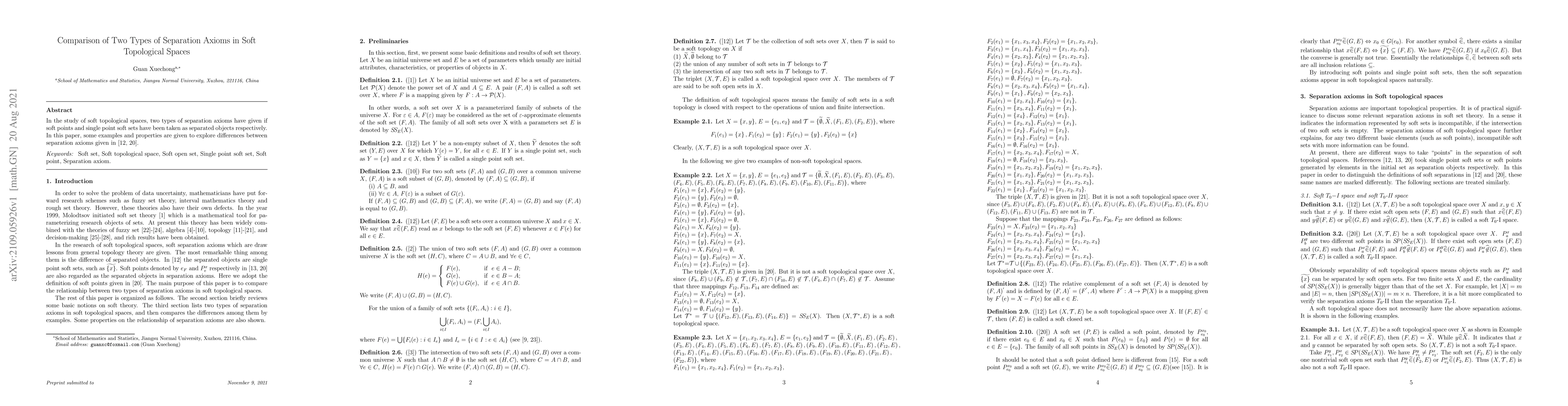 This paper investigates two types of separation axioms in soft topological spaces, comparing their properties and illustrating differences through examples. It aims to explore how soft points and single point soft sets are treated as separated objects under these axioms.