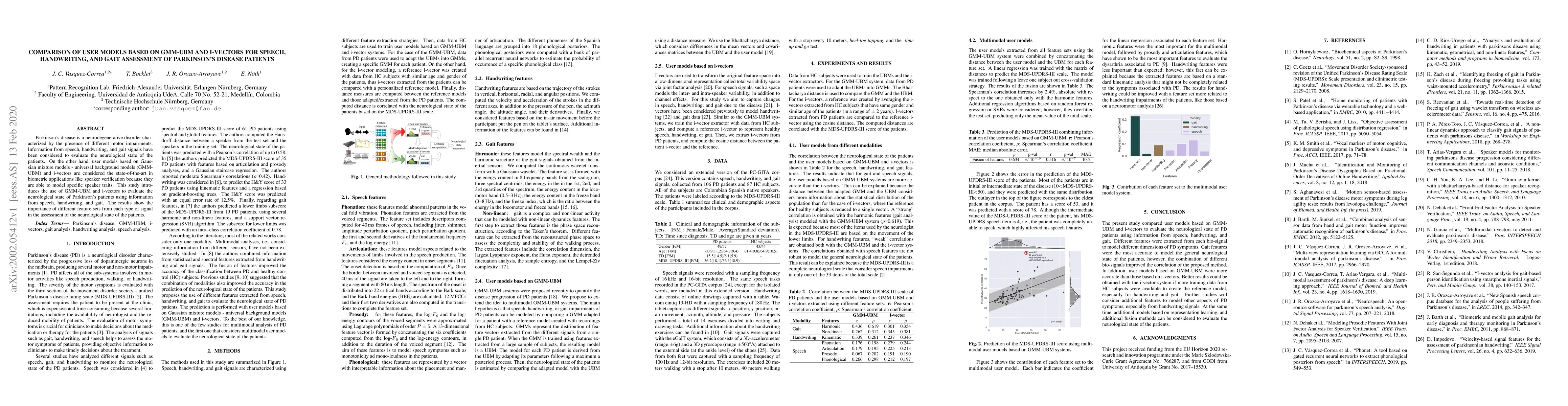 This research compares GMM-UBM and i-vectors in assessing Parkinson's disease through speech, handwriting, and gait analysis. Findings highlight the significance of various feature sets from these signals in evaluating patients' neurological states, suggesting their potential use in diagnosing and monitoring the disease.
