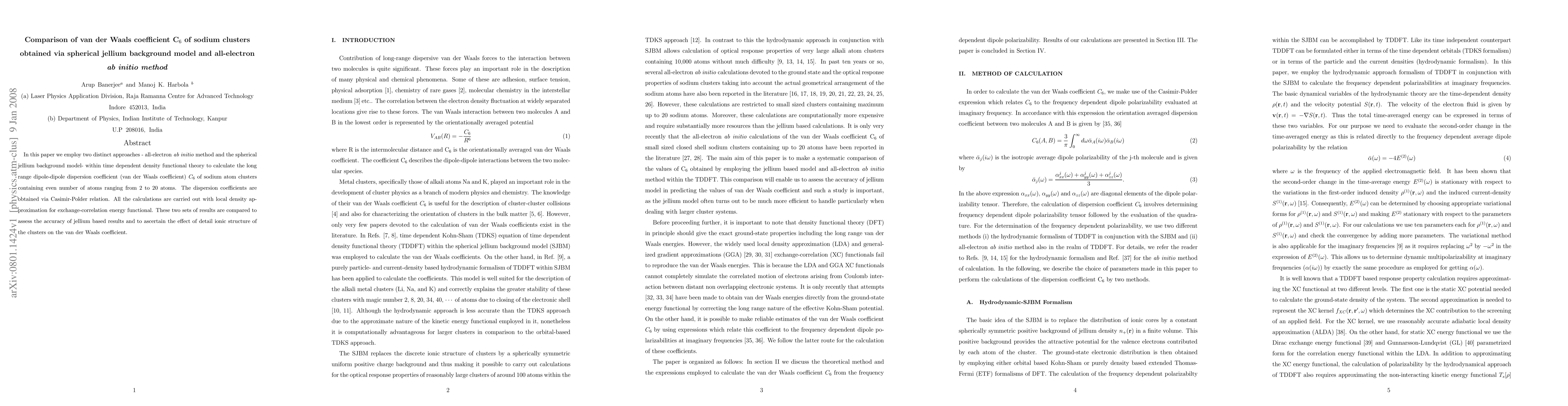 This paper compares the van der Waals coefficient $C_{6}$ of sodium clusters using two methods: the spherical jellium background model and the all-electron ab-initio method within time-dependent density functional theory. The results aim to evaluate the accuracy of the jellium model and the influence of cluster ionic structure on $C_{6}$.