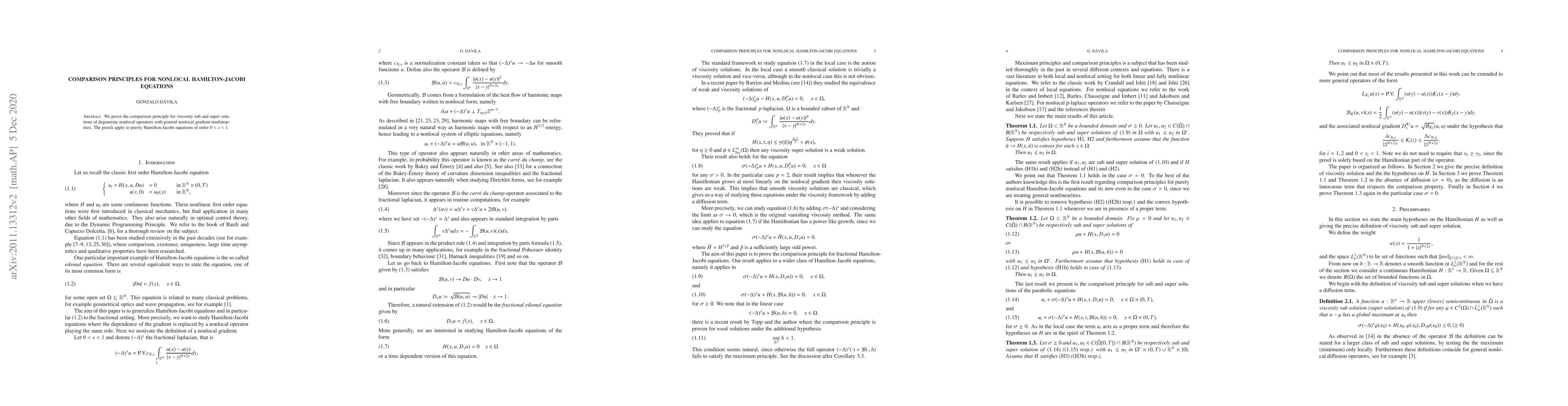 Summary: This paper establishes a comparison principle for viscosity sub and super solutions of degenerate nonlocal Hamilton-Jacobi equations with general nonlocal gradient nonlinearities, applicable to equations of order $0<s<1$. The results extend the understanding of nonlocal operator behavior in these contexts.