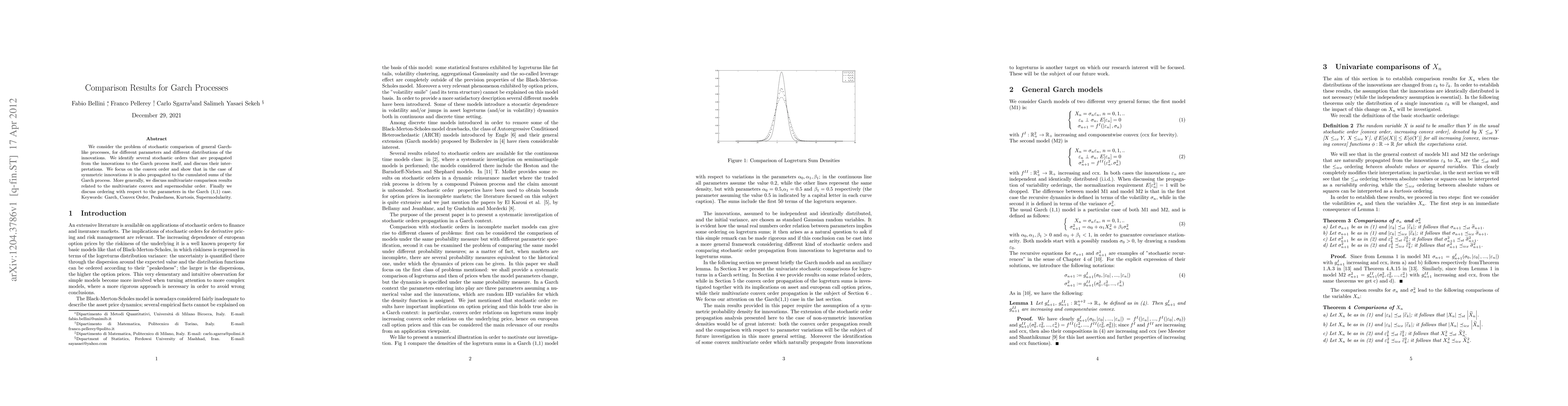 We consider the problem of stochastic comparison of general Garch-like processes, for different parameters and different distributions of the innovations. We identify several stochastic orders that are propagated from the innovations to the Garch process itself, and discuss their interpretations. We focus on the convex order and show that in the case of symmetric innovations it is also propagated to the cumulated sums of the Garch process. More generally, we discuss multivariate comparison results related to the multivariate convex and supermodular order. Finally we discuss ordering with respect to the parameters in the Garch (1,1) case. Key words: Garch, Convex Order, Peakedness, Kurtosis, Supermodularity.