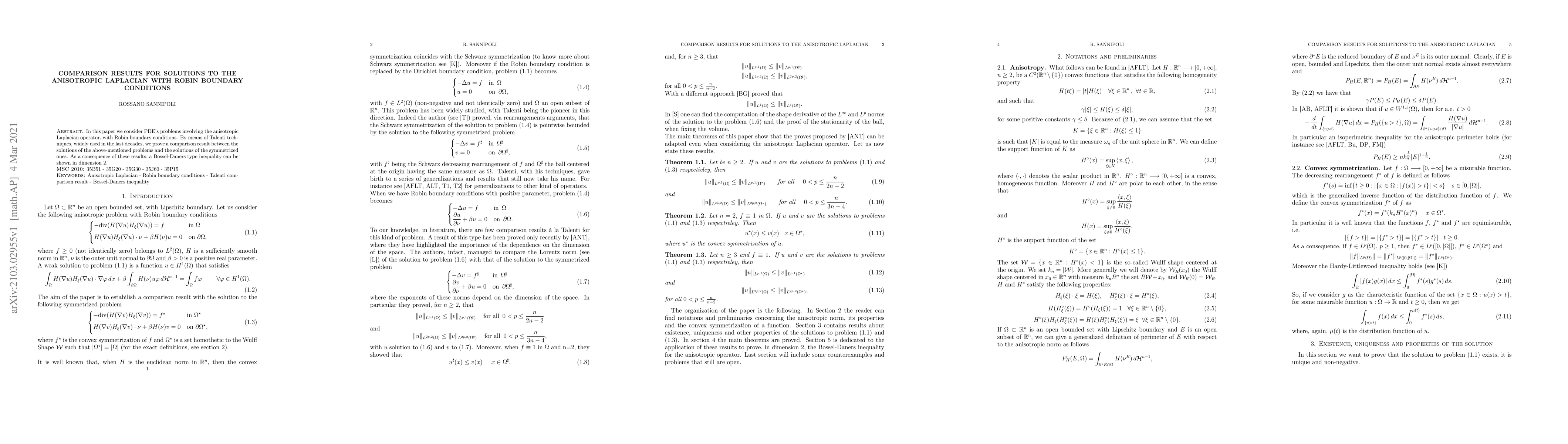 In this paper we consider PDE's problems involving the anisotropic Laplacian operator, with Robin boundary conditions. By means of Talenti techniques, widely used in the last decades, we prove a comparison result between the solutions of the above-mentioned problems and the solutions of the symmetrized ones. As a consequence of these results, a Bossel-Daners type inequality can be shown in dimension 2.