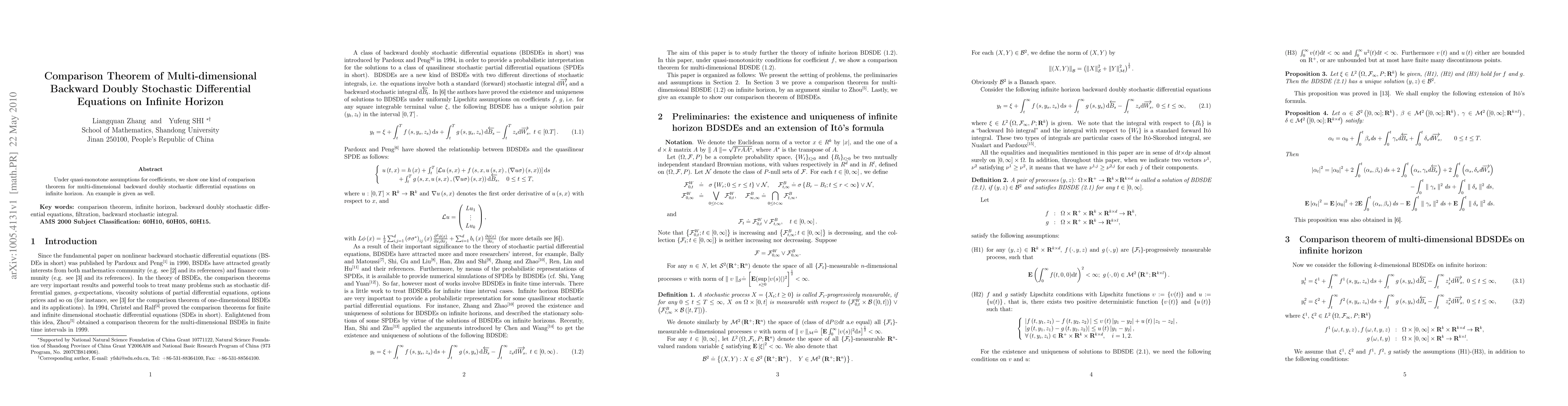 Summary: This paper establishes a comparison theorem for multi-dimensional backward doubly stochastic differential equations under quasi-monotone assumptions, with an illustrative example provided. The focus is on infinite horizon scenarios.