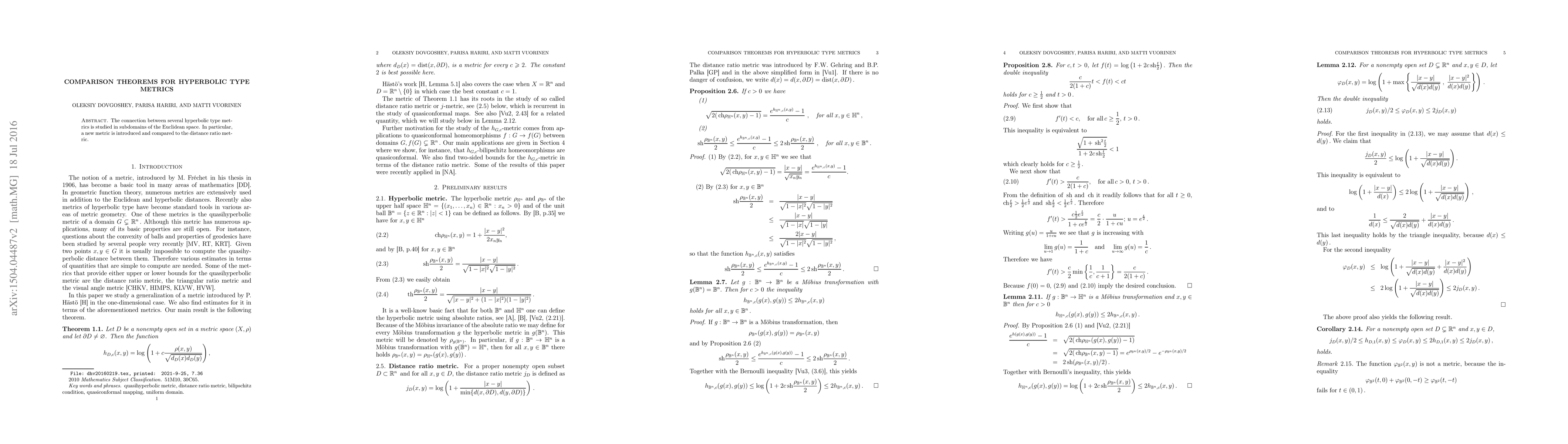 The connection between several hyperbolic type metrics is studied in subdomains of the Euclidean space. In particular, a new metric is introduced and compared to the distance ratio metric.