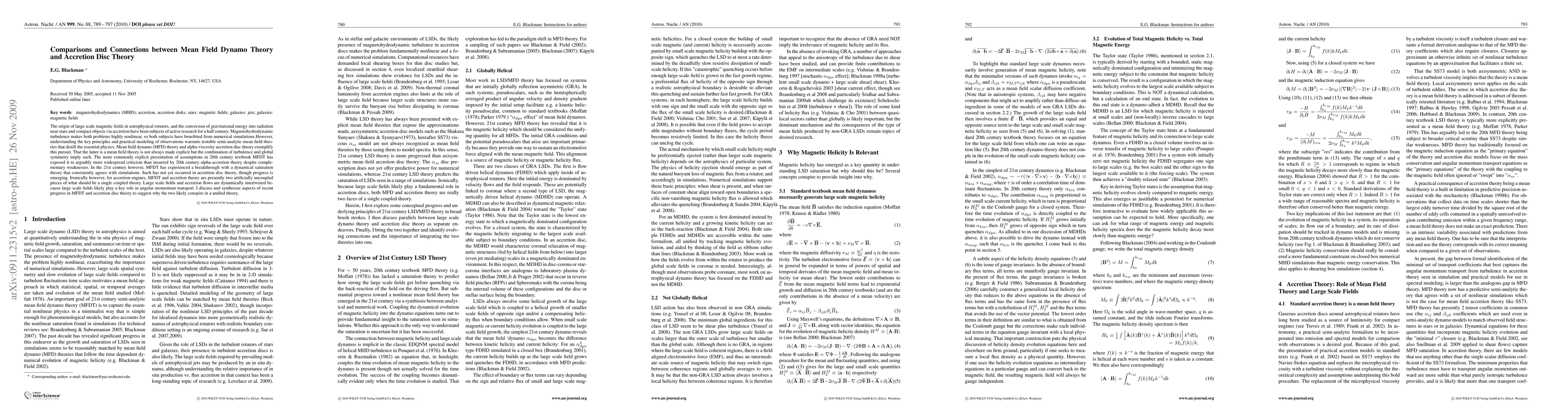 This paper explores the parallels between Mean Field Dynamo Theory (MFDT) and accretion disc theory, highlighting that both should ideally be unified. MFDT has seen advancements with a dynamical saturation theory, while accretion disc theory is progressing but lacks a similar comprehensive theory. The research suggests that large-scale magnetic fields and accretion flows are interconnected, implying a unified theory is necessary to understand astrophysical phenomena.