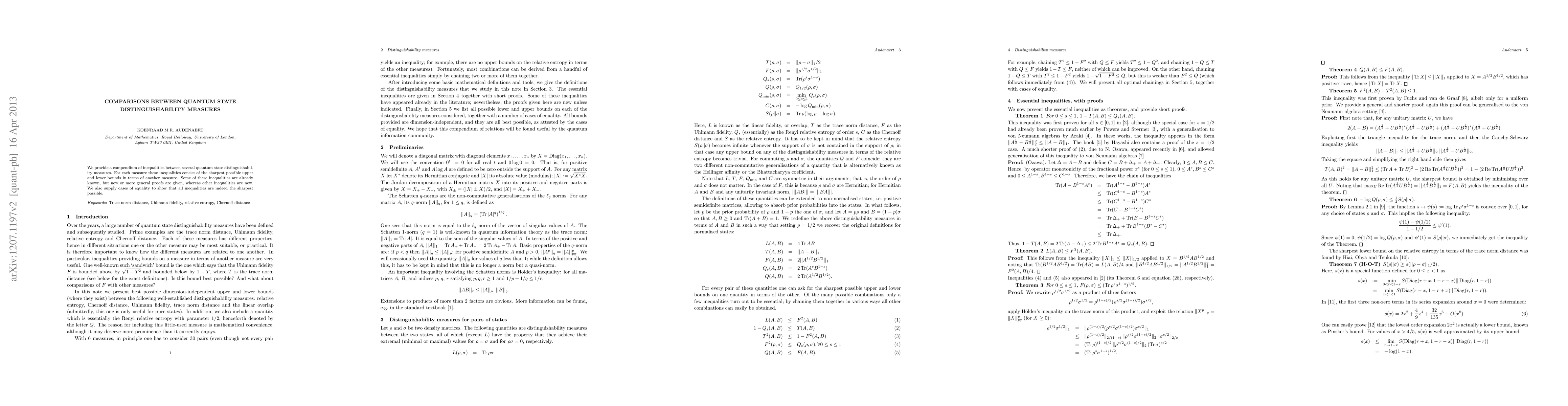 This paper compiles and proves the sharpest upper and lower bounds between various quantum state distinguishability measures, presenting both known and novel inequalities, along with cases of equality to demonstrate the optimality of these bounds.