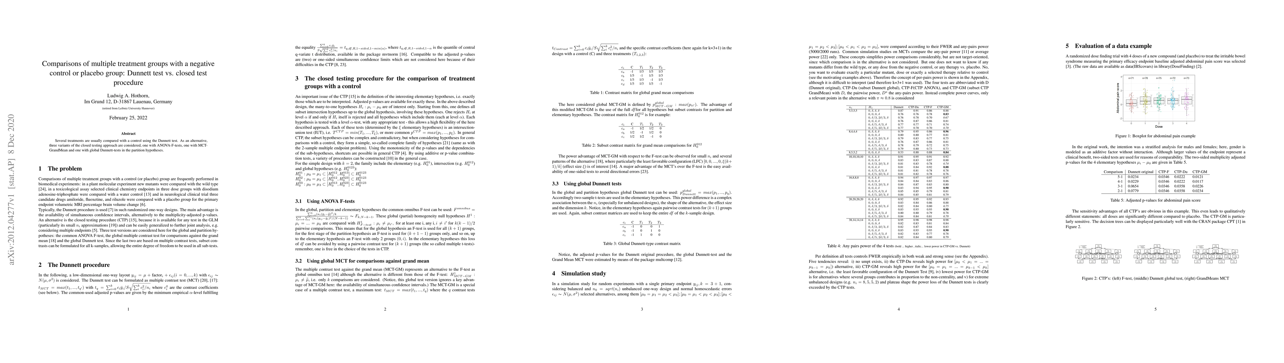 Several treatments are usually compared with a control using the Dunnett test. As an alternative, three variants of the closed testing approach are considered, one with ANOVA-F-tests, one with MCT-GrandMean and one with global Dunnett-tests in the partition hypotheses.