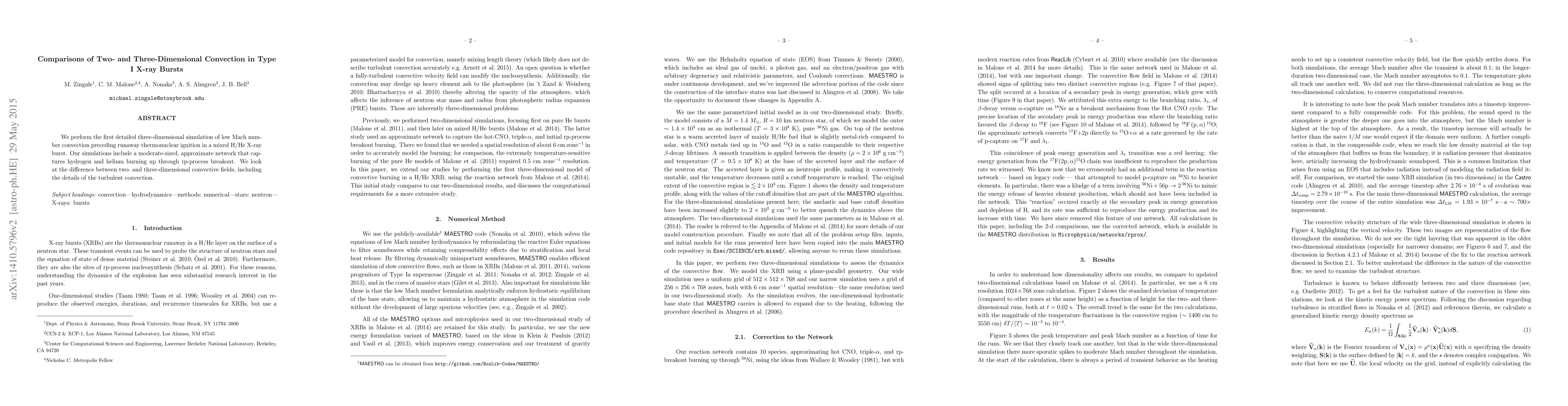 We perform the first detailed three-dimensional simulation of low Mach number convection preceding thermonuclear ignition in a mixed H/He X-ray burst. Our simulations include a moderate-sized, approximate network that captures hydrogen and helium burning up through rp-process breakout. We look in detail at the difference between two- and three-dimensional convective fields, including the details of the turbulent convection.