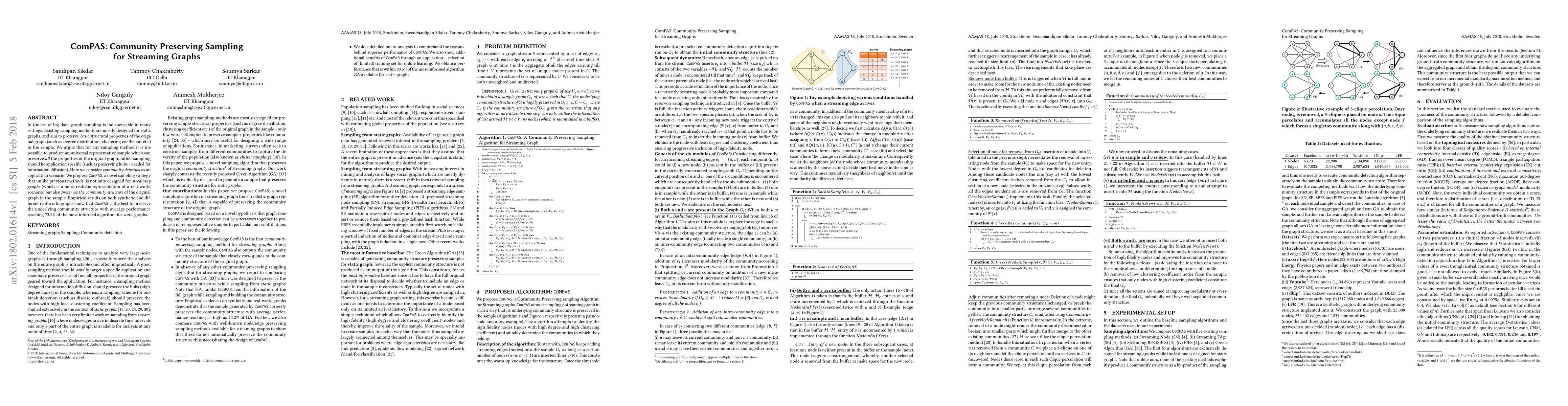 In the era of big data, graph sampling is indispensable in many settings. Existing sampling methods are mostly designed for static graphs, and aim to preserve basic structural properties of the original graph (such as degree distribution, clustering coefficient etc.) in the sample. We argue that for any sampling method it is impossible to produce an universal representative sample which can preserve all the properties of the original graph; rather sampling should be application specific (such as preserving hubs - needed for information diffusion). Here we consider community detection as an application scenario. We propose ComPAS, a novel sampling strategy that unlike previous methods, is not only designed for streaming graphs (which is a more realistic representation of a real-world scenario) but also preserves the community structure of the original graph in the sample. Empirical results on both synthetic and different real-world graphs show that ComPAS is the best to preserve the underlying community structure with average performance reaching 73.2% of the most informed algorithm for static graphs.