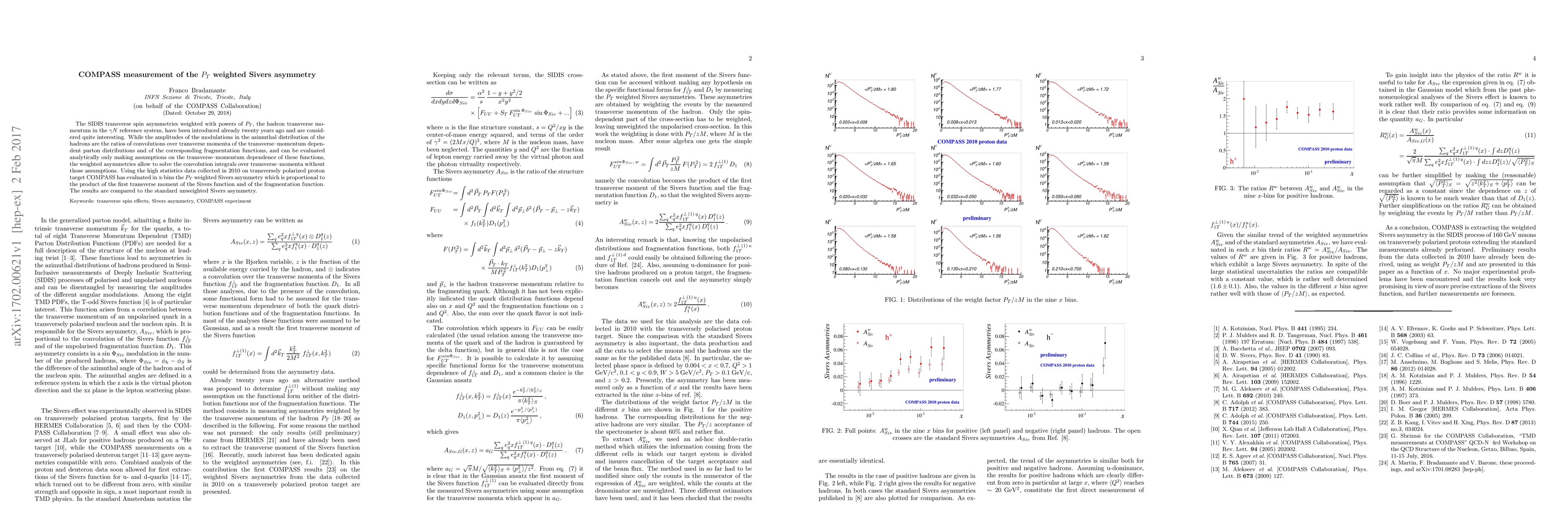 The COMPASS experiment measured the P_T weighted Sivers asymmetry using high-stats data from a 2010 polarized proton target run. This method solves convolution integrals over transverse momenta without assuming TMD dependencies. Results show the first transverse moment product of Sivers function and fragmentation function, compared to standard unweighted Sivers asymmetry.