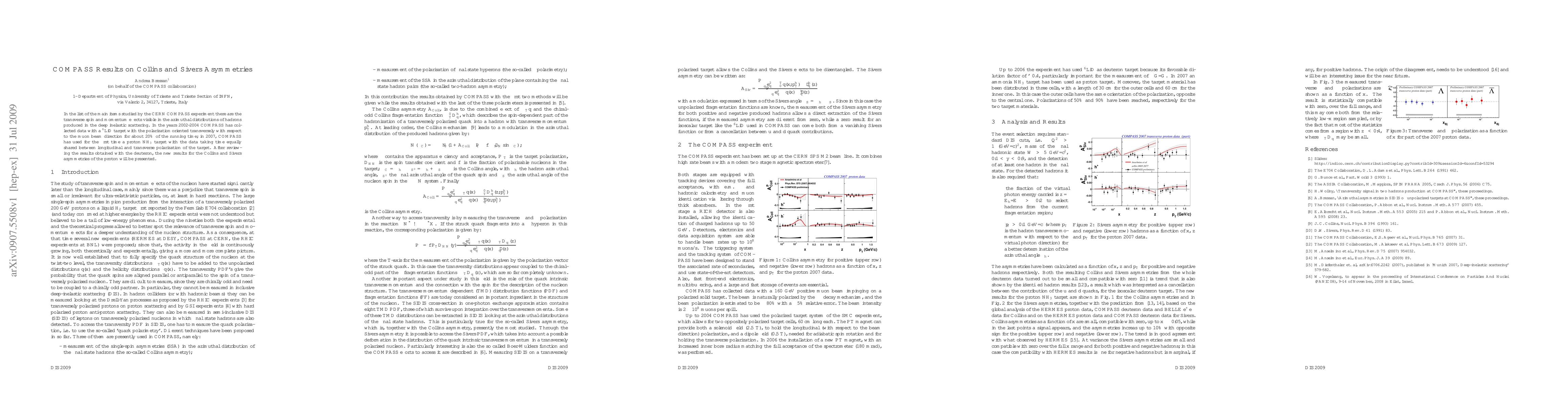 The CERN COMPASS experiment studied transverse spin and momentum effects in deep inelastic scattering, focusing on Collins and Sivers asymmetries. Results from 2002-2004 with a polarized deuteron target and new findings from 2007 with a polarized proton target are presented.