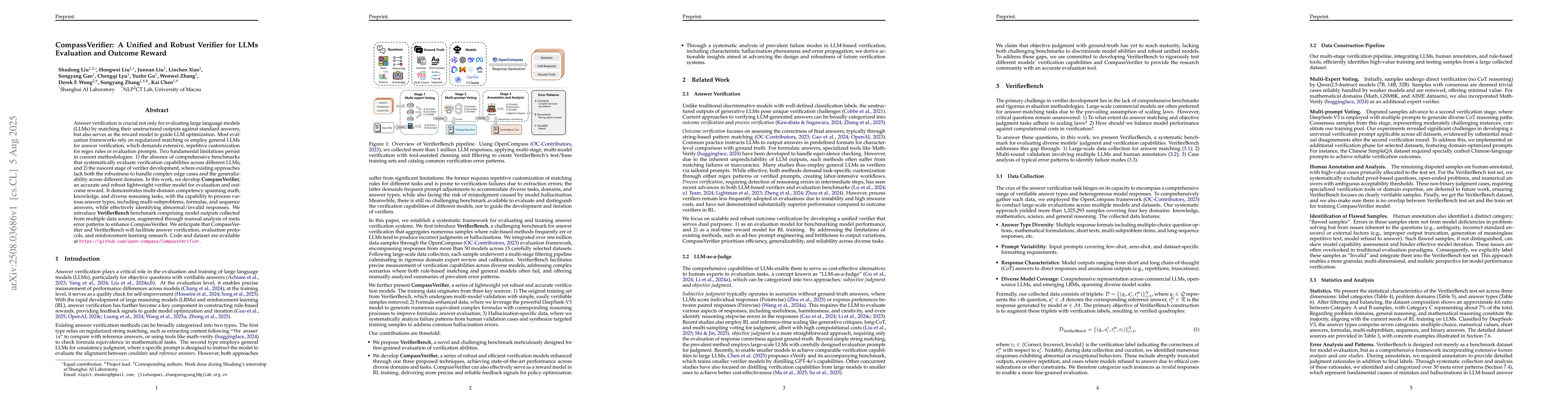 The research introduces CompassVerifier, a lightweight verifier model for evaluating and rewarding large language models (LLMs) across various domains and answer types, including math, knowledge, and diverse reasoning tasks.