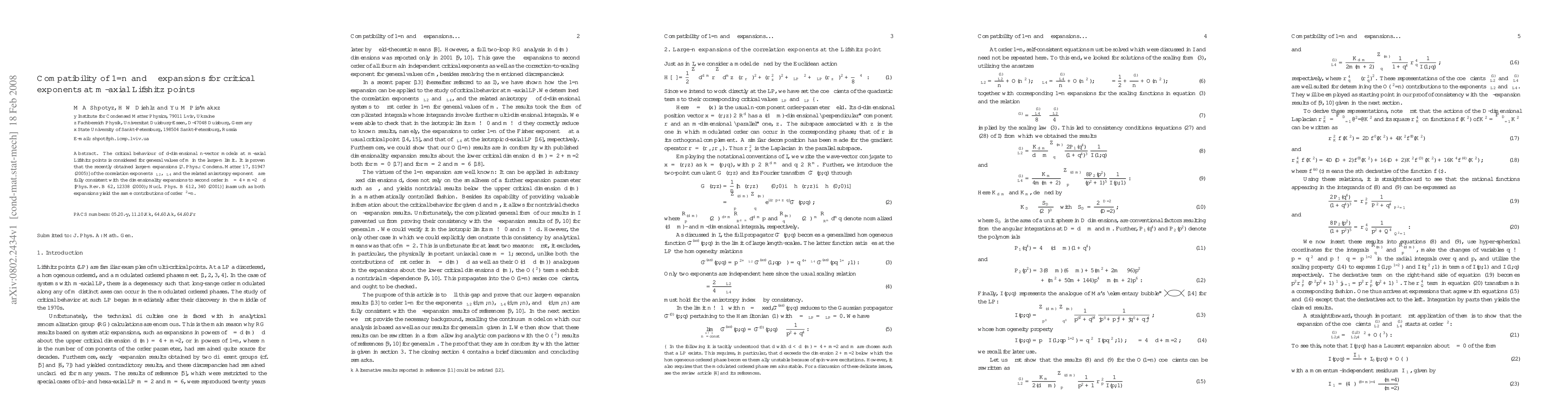Research confirms that large-N expansions of correlation exponents at m-axial Lifshitz points match dimensionality expansions in the epsilon expansion, supporting a consistent framework for critical exponents.