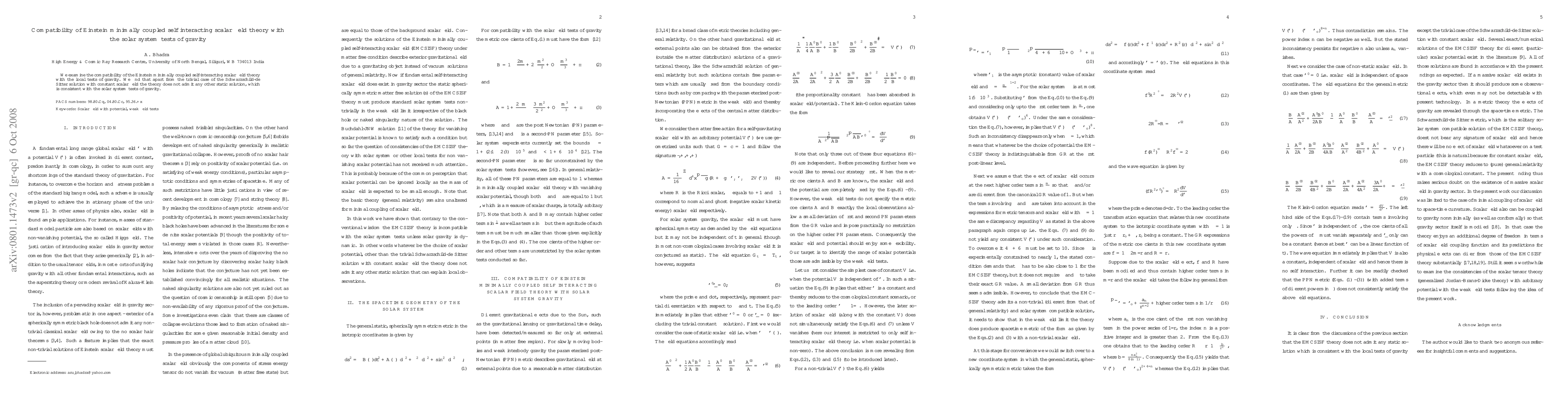 Summary: This research finds that Einstein's minimally coupled self-interacting scalar field theory is compatible with solar system gravity tests only in the trivial Schwarzschild-de Sitter solution with a constant scalar field, lacking other static solutions that fit these tests.