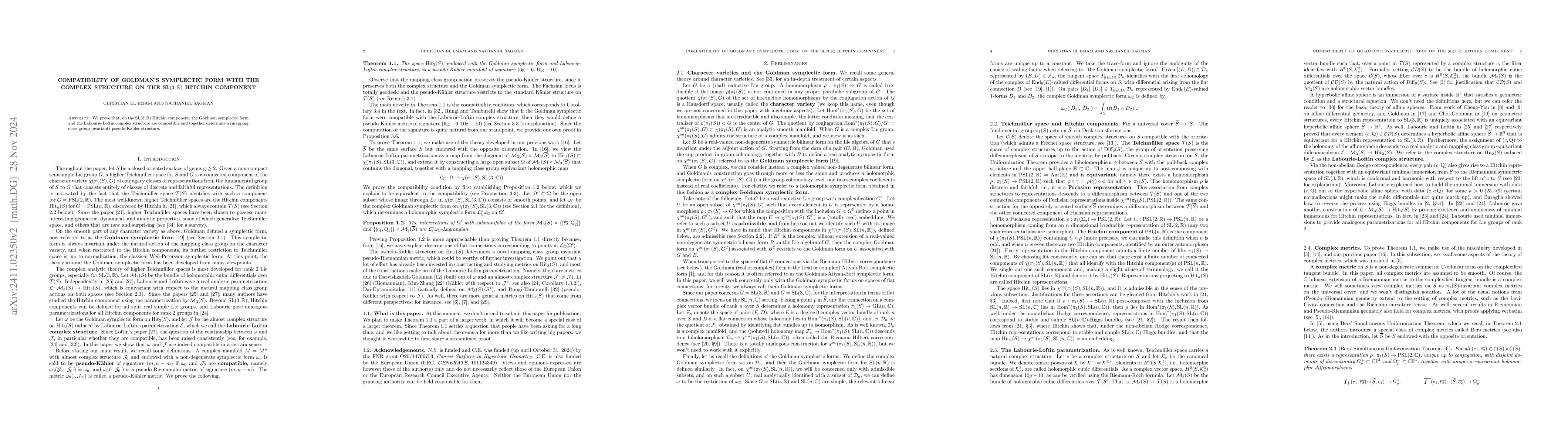 This paper demonstrates the compatibility between Goldman's symplectic form and Labourie-Loftin's complex structure on the $\mathrm{SL}(3,\mathbb R)$ Hitchin component, establishing a pseudo-Kähler structure invariant under mapping class group transformations.