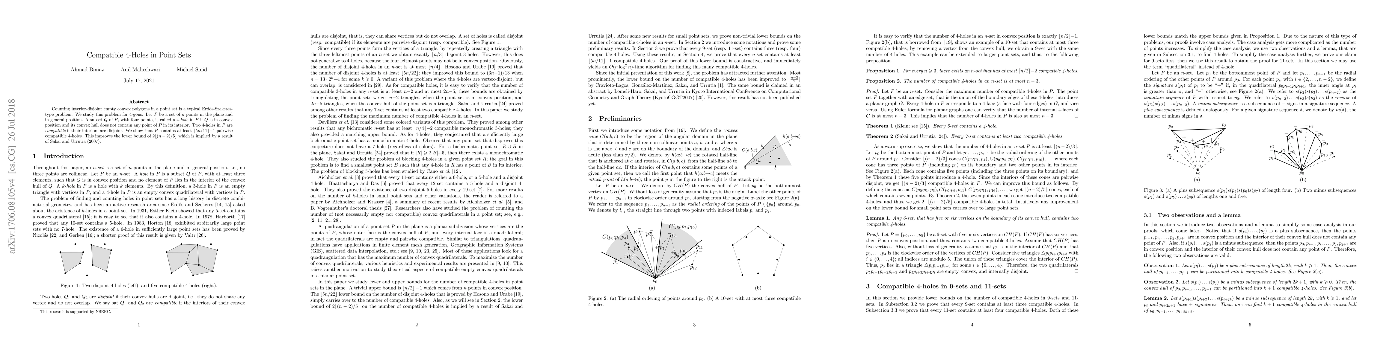This paper investigates the problem of counting interior-disjoint convex quadrilaterals (4-holes) in a set of $n$ points in general position, proving that at least $\lfloor 5n/11\rfloor - 1$ such compatible 4-holes exist, thus improving upon a previous lower bound.