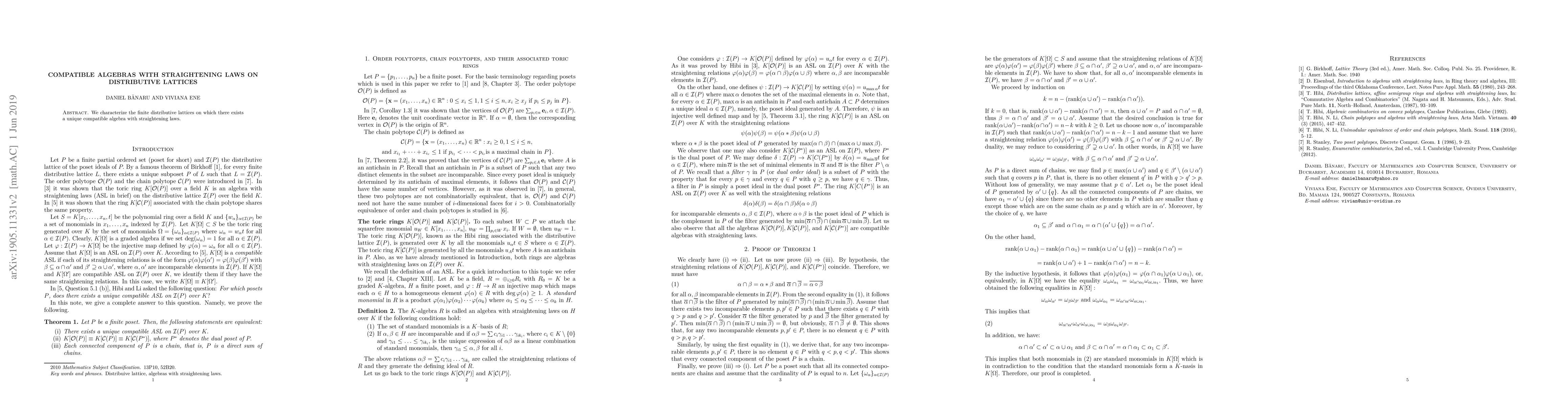 This research paper characterizes finite distributive lattices with a unique compatible algebra that has straightening laws, marking a significant milestone in the study of lattice theory.