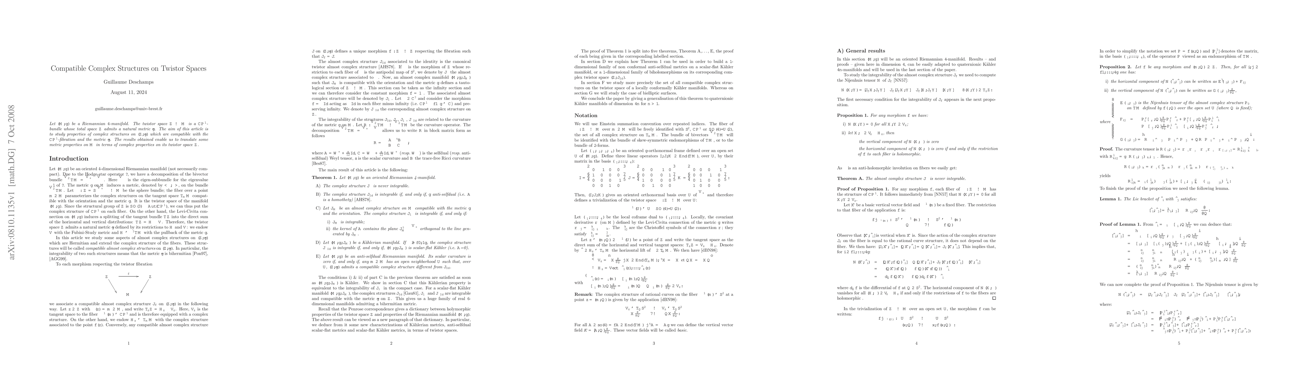 The paper presents detailed analysis and proofs regarding the integrability of complex structures on twistor spaces compatible with the CP1-fibration and the natural metric on the total space.