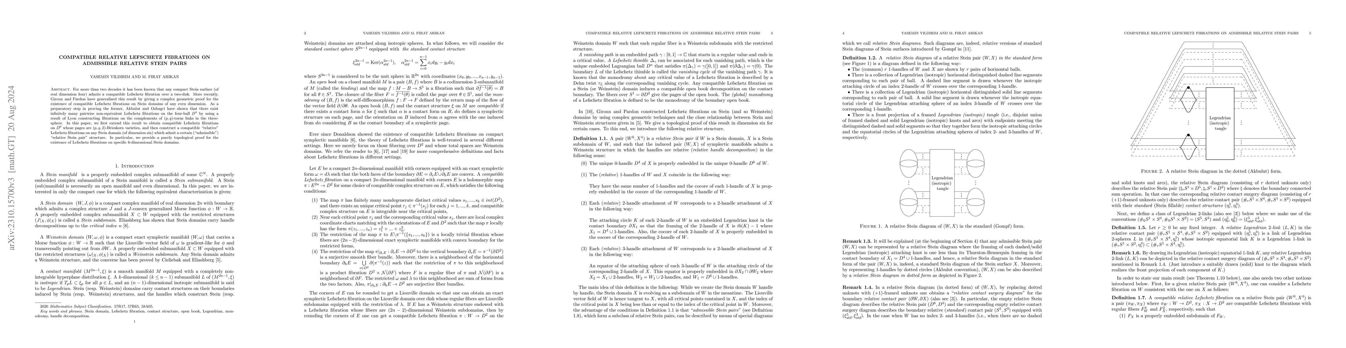 This paper extends the existence of compatible Lefschetz fibrations to the six-ball with (p, q, 2)-Brieskorn pages, and constructs relative Lefschetz fibrations on 6-dimensional Stein domains with an admissible relative Stein pair structure, providing a topological proof for their existence.