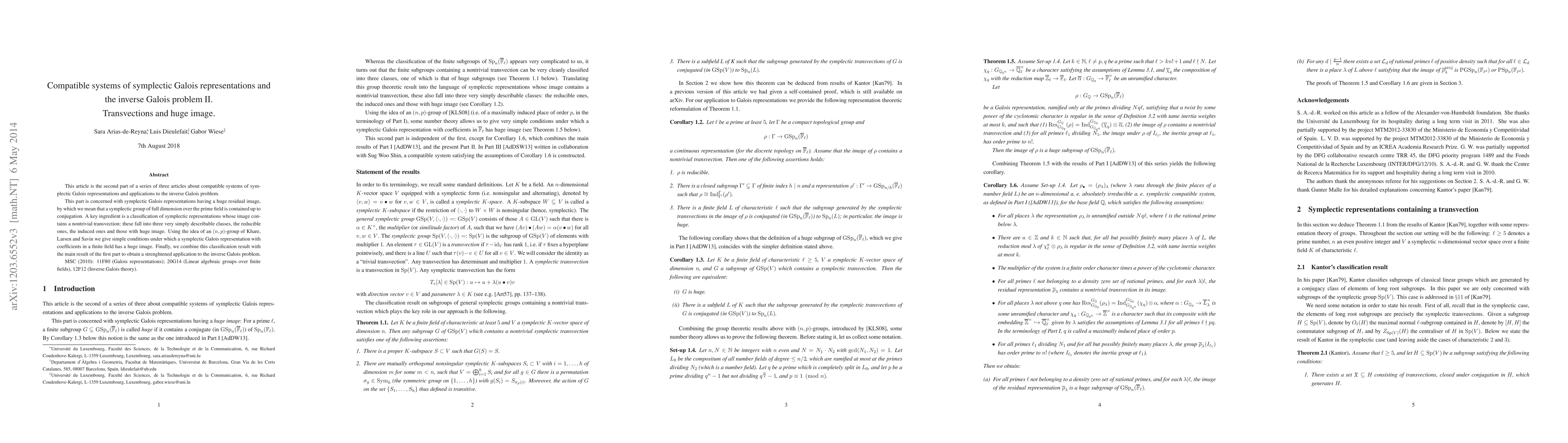 This paper classifies symplectic Galois representations with a huge residual image, focusing on those containing a nontrivial transvection, and utilizes an (n,p)-group concept to establish conditions for huge image. It strengthens applications to the inverse Galois problem by combining these findings with results from the first part of the series.