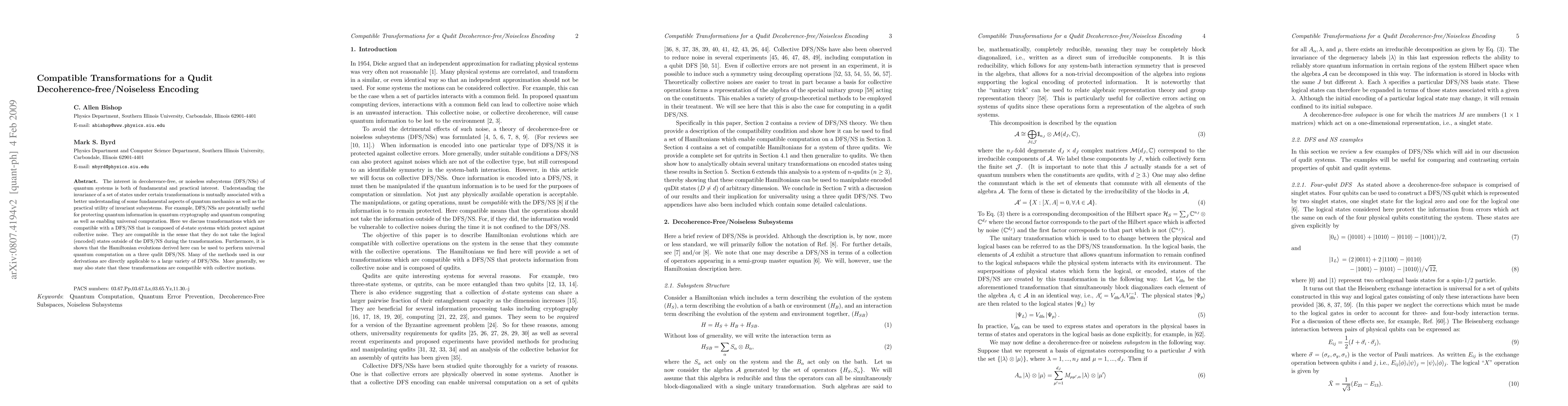 This paper explores compatible transformations for decoherence-free subsystems (DFS/NSs) composed of qudits, which protect quantum information from collective noise. It demonstrates that these transformations maintain encoded states within the DFS/NS and can enable universal quantum computation, with methods broadly applicable to various DFS/NSs.