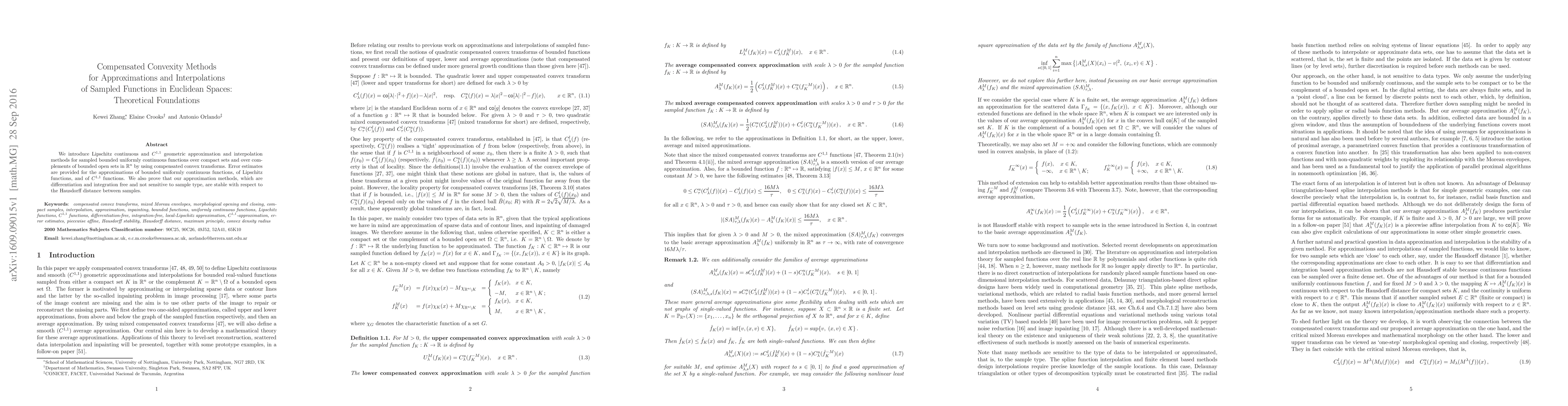 This paper presents Lipschitz continuous and $C^{1,1}$ approximation and interpolation methods for sampled functions using compensated convex transforms, providing error estimates and stability proofs for various function types without reliance on differentiation or integration. The methods are robust to variations in sample types.