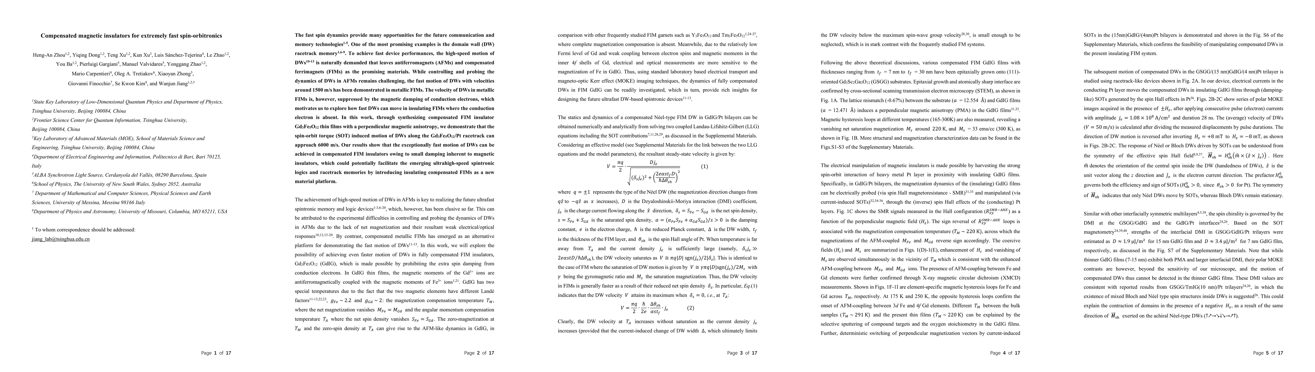 This paper demonstrates that compensated magnetic insulators, such as Gd3Fe5O12 thin films, can achieve exceptionally fast domain wall motion of up to 6000 m/s via spin-orbit torque, due to the reduced damping effects inherent in magnetic insulators. This discovery suggests a new material platform for ultrahigh-speed spintronic applications, including racetrack memory technologies.