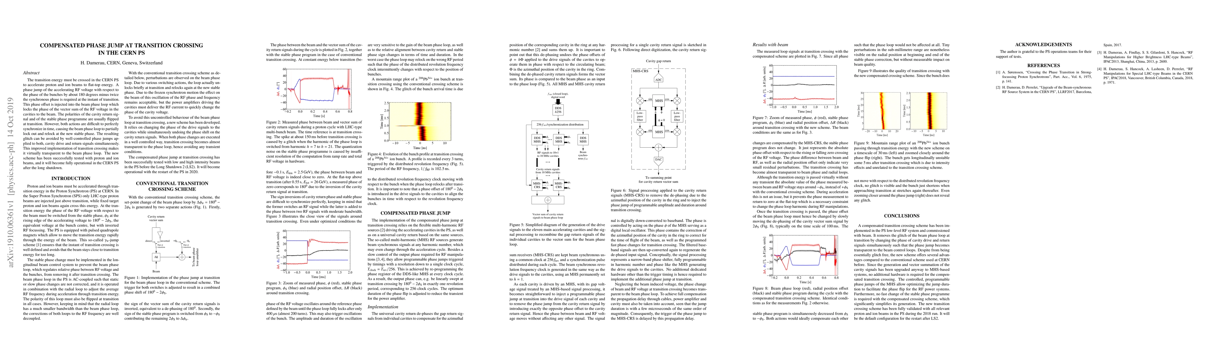 The transition energy must be crossed in the CERN PS to accelerate proton and ion beams to flat-top energy. A phase jump of the accelerating RF voltage with respect to the phase of the bunches by about 180 degrees minus twice the synchronous phase is required at the instant of transition. This phase offset is injected into the beam phase loop which locks the phase of the vector sum of the RF voltage in the cavities to the beam. The polarities of the cavity return signal and of the stable phase programme are usually flipped at transition. However, both actions are difficult to perfectly synchronize in time, causing the beam phase loop to partially lock out and relock at the new stable phase. The resulting glitch can be avoided by well-controlled phase jumps applied to both, cavity drive and return signals simultaneously. This improved implementation of transition crossing makes it virtually transparent to the beam phase loop. The new scheme has been successfully tested with proton and ion beams, and it will become fully operational in the CERN PS after the long shutdown.