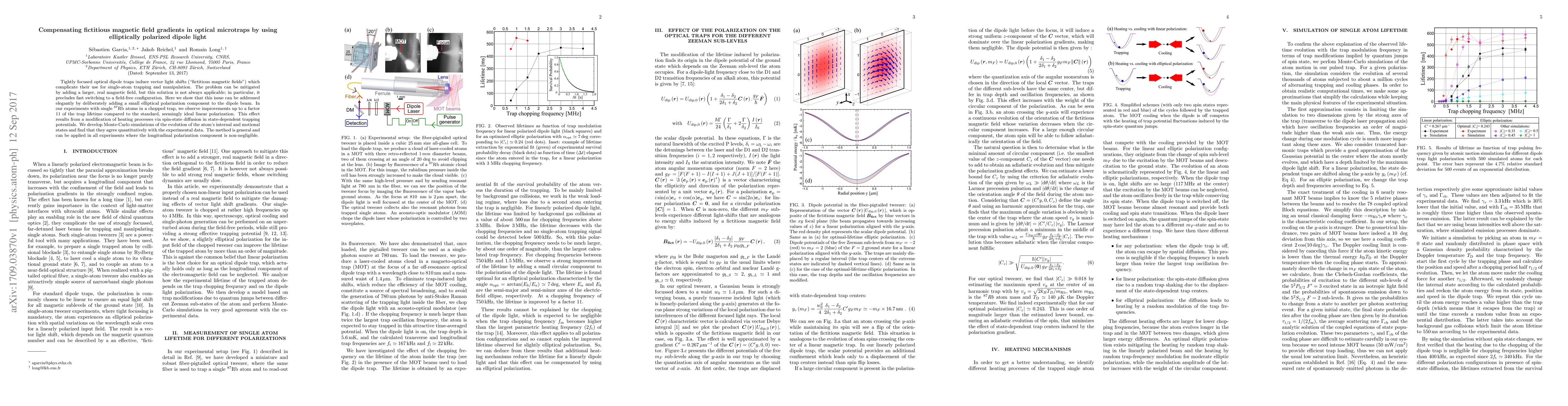 This paper proposes using elliptically polarized dipole light to compensate for fictitious magnetic fields in optical microtraps, significantly improving single-atom trapping lifetimes by up to a factor of 11. The method avoids the drawbacks of adding a larger real magnetic field, offering a general solution applicable to various experiments where longitudinal polarization components are significant.