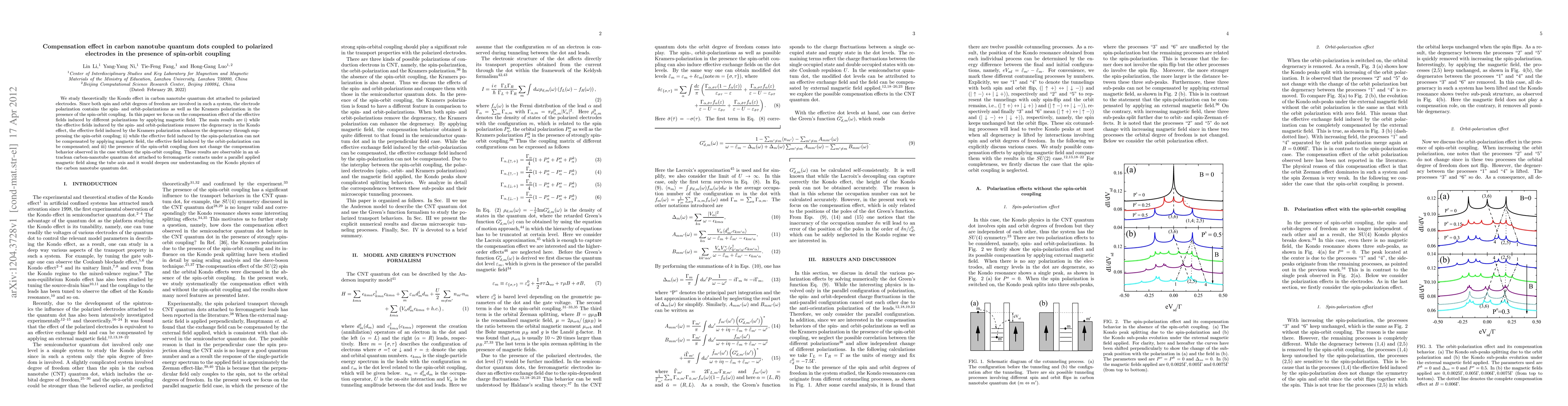 This paper theoretically investigates the Kondo effect in carbon nanotube quantum dots connected to polarized electrodes, focusing on the compensation effect of effective fields induced by different polarizations under spin-orbit coupling. The study reveals that while spin-orbit polarizations can be compensated by magnetic fields, the spin-polarization cannot, and the presence of spin-orbit coupling does not alter the observed compensation behavior.