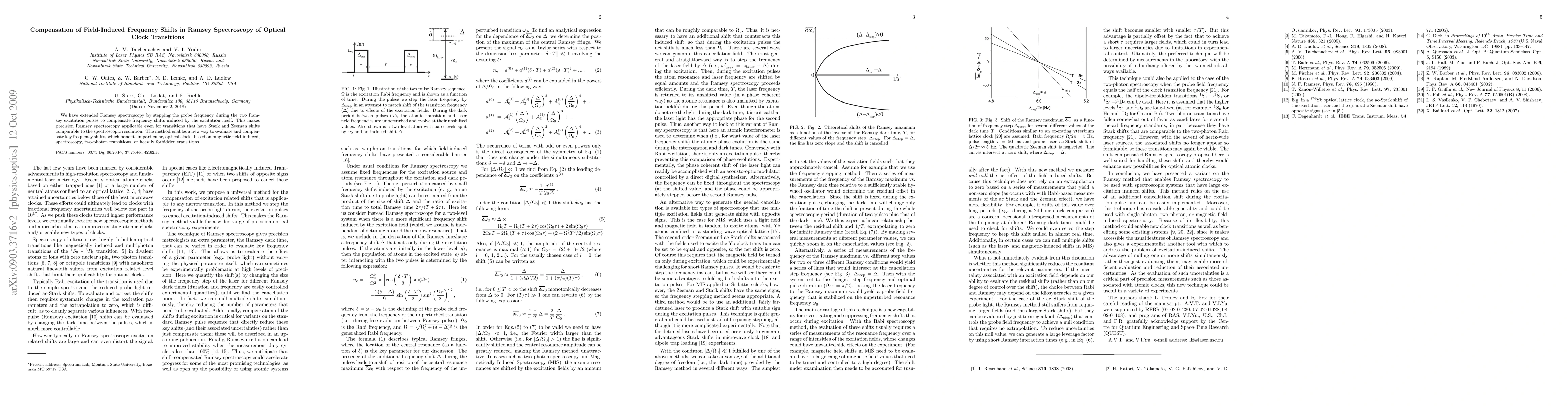We have extended Ramsey spectroscopy by stepping the probe frequency during the two Ramsey excitation pulses to compensate frequency shifts induced by the excitation itself. This makes precision Ramsey spectroscopy applicable even for transitions that have Stark and Zeeman shifts comparable to the spectroscopic resolution. The method enables a new way to evaluate and compensate key frequency shifts, which benefits in particular, optical clocks based on magnetic field-induced, spectroscopy, two-photon transitions, or heavily forbidden transitions.