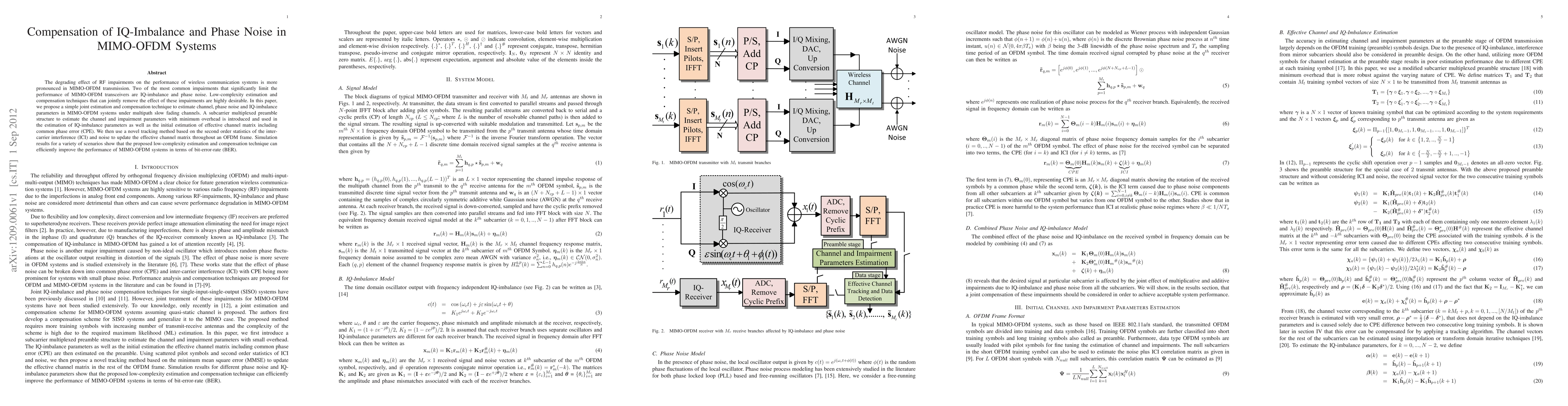 This paper proposes a low-complexity technique to jointly estimate and compensate for IQ-imbalance and phase noise in MIMO-OFDM systems using a subcarrier multiplexed preamble and a tracking method based on inter-carrier interference statistics, significantly improving BER performance.