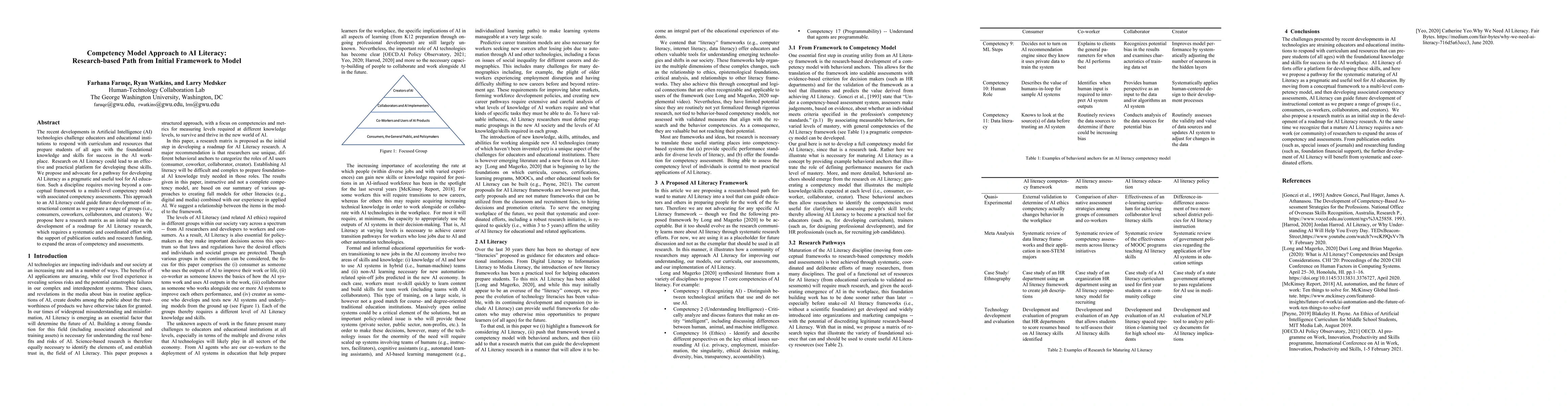This paper proposes a competency model approach to developing AI Literacy, advocating for a pragmatic pathway from a conceptual framework to a multi-level competency model with assessments. It calls for coordinated research efforts to expand instructional content and competency areas for various groups.