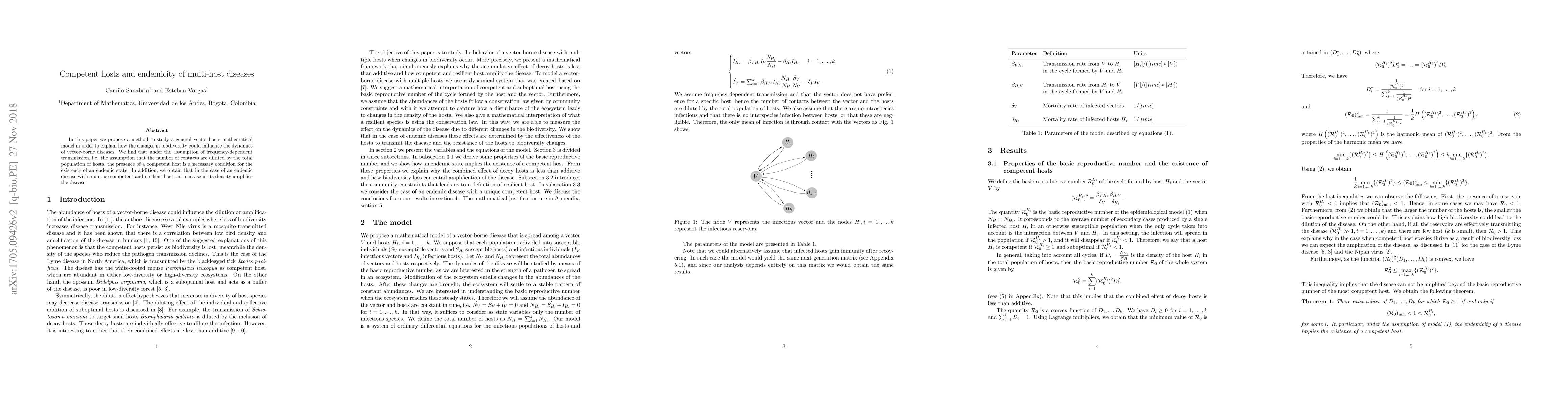 A mathematical model shows that a competent host is necessary for an endemic state in multi-host diseases, and increasing the host's density can amplify the disease. This finding highlights the importance of biodiversity in understanding vector-borne disease dynamics.