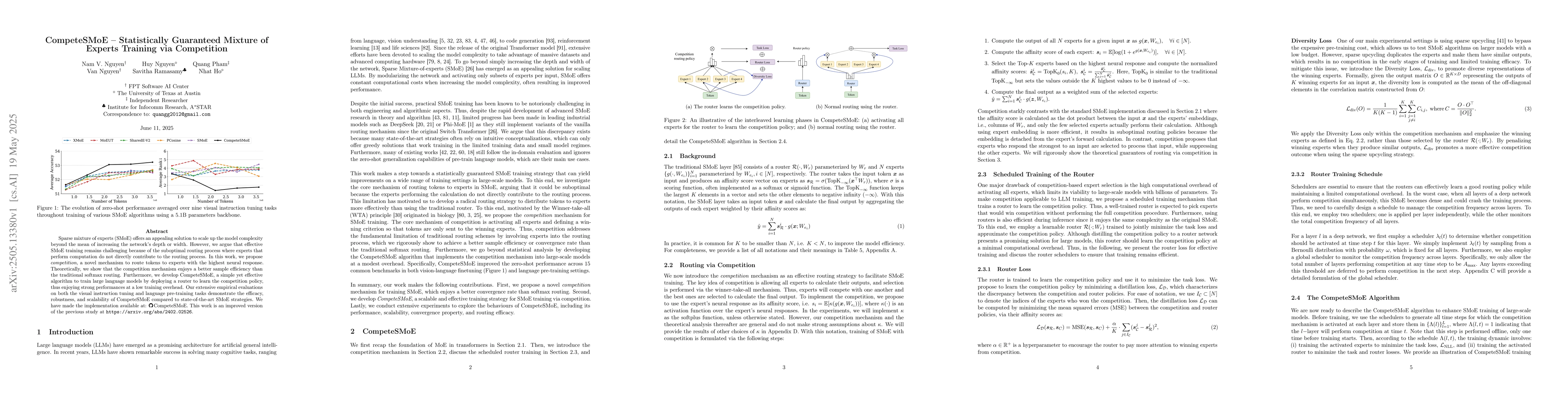 Sparse mixture of experts (SMoE) offers an appealing solution to scale up the model complexity beyond the mean of increasing the network's depth or width. However, we argue that effective SMoE training remains challenging because of the suboptimal routing process where experts that perform computation do not directly contribute to the routing process. In this work, we propose competition, a novel mechanism to route tokens to experts with the highest neural response. Theoretically, we show that the competition mechanism enjoys a better sample efficiency than the traditional softmax routing. Furthermore, we develop CompeteSMoE, a simple yet effective algorithm to train large language models by deploying a router to learn the competition policy, thus enjoying strong performances at a low training overhead. Our extensive empirical evaluations on both the visual instruction tuning and language pre-training tasks demonstrate the efficacy, robustness, and scalability of CompeteSMoE compared to state-of-the-art SMoE strategies. We have made the implementation available at: https://github.com/Fsoft-AIC/CompeteSMoE. This work is an improved version of the previous study at arXiv:2402.02526