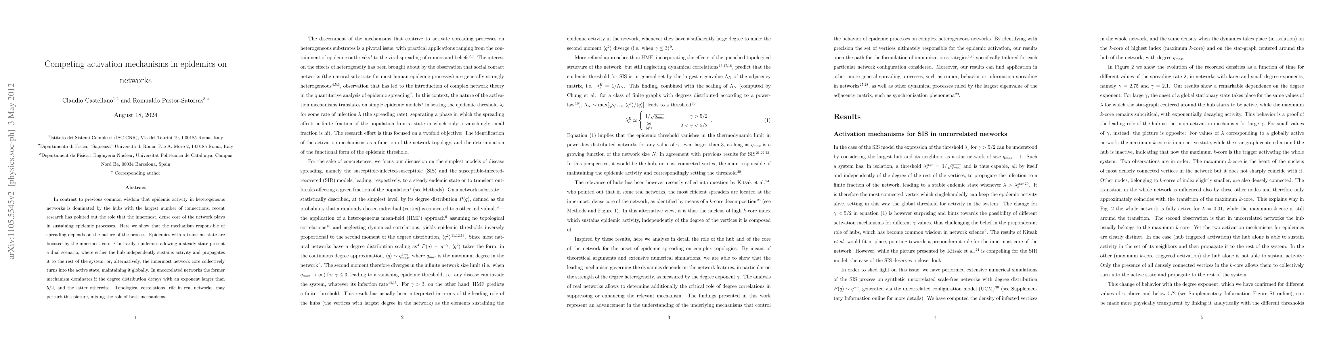This paper explores how different activation mechanisms influence the spread of epidemics in heterogeneous networks, revealing that the dense core of the network can play a crucial role in sustaining epidemics, especially in transient states. It highlights a dual scenario in steady-state epidemics where either hubs or the core sustain activity, with the dominant mechanism depending on the network's degree distribution and topological correlations.