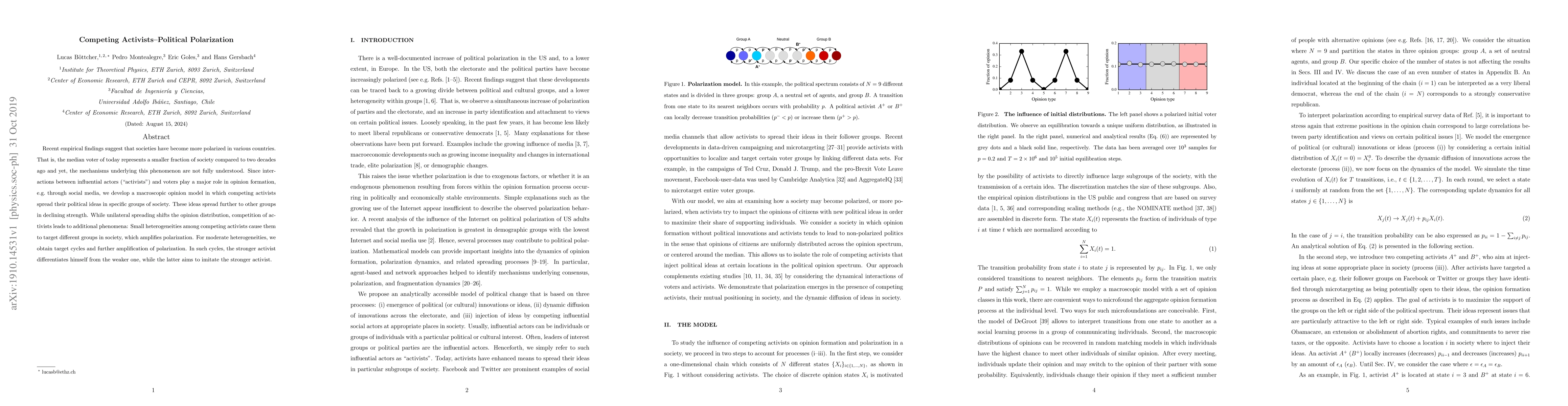 This paper explores how competing activists contribute to political polarization by developing a macroscopic opinion model. It finds that small differences among activists can lead to targeting different societal groups, amplifying polarization and potentially creating cycles where activists differentiate or imitate each other.