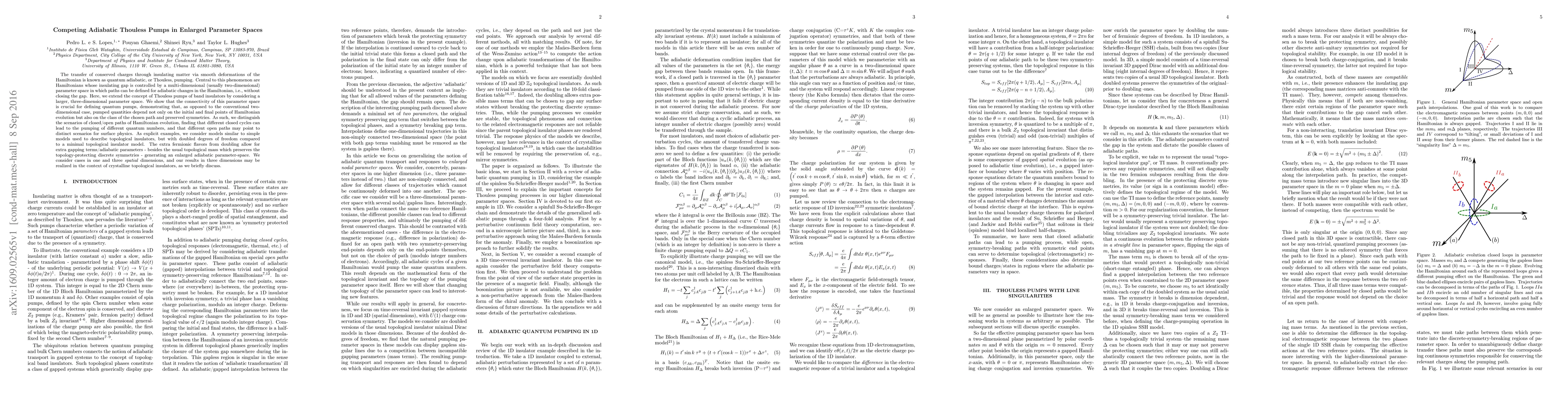 The transfer of conserved charges through insulating matter via smooth deformations of the Hamiltonian is known as quantum adiabatic, or Thouless, pumping. Central to this phenomenon are Hamiltonians whose insulating gap is controlled by a multi-dimensional (usually two-dimensional) parameter space in which paths can be defined for adiabatic changes in the Hamiltonian, i.e., without closing the gap. Here, we extend the concept of Thouless pumps of band insulators by considering a larger, three-dimensional parameter space. We show that the connectivity of this parameter space is crucial for defining quantum pumps, demonstrating that, as opposed to the conventional two-dimensional case, pumped quantities depend not only on the initial and final points of Hamiltonian evolution but also on the class of the chosen path and preserved symmetries. As such, we distinguish the scenarios of closed/open paths of Hamiltonian evolution, finding that different closed cycles can lead to the pumping of different quantum numbers, and that different open paths may point to distinct scenarios for surface physics. As explicit examples, we consider models similar to simple models used to describe topological insulators, but with doubled degrees of freedom compared to a minimal topological insulator model. The extra fermionic flavors from doubling allow for extra gapping terms/adiabatic parameters - besides the usual topological mass which preserves the topology-protecting discrete symmetries - generating an enlarged adiabatic parameter-space. We consider cases in one and three \emph{spatial} dimensions, and our results in three dimensions may be realized in the context of crystalline topological insulators, as we briefly discuss.