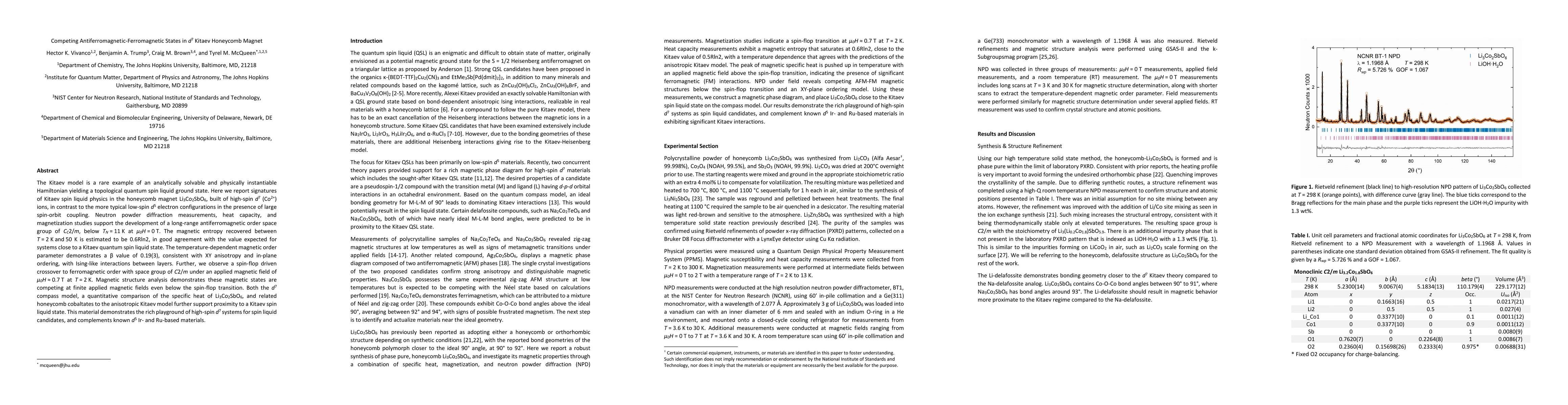 This paper investigates the competing antiferromagnetic and ferromagnetic states in the $\it{d^7}$ Kitaev honeycomb magnet $Li_3Co_2SbO_6$, revealing signatures of Kitaev spin liquid physics and demonstrating a transition to ferromagnetic order under an applied magnetic field. The study supports the material's proximity to a Kitaev quantum spin liquid state.