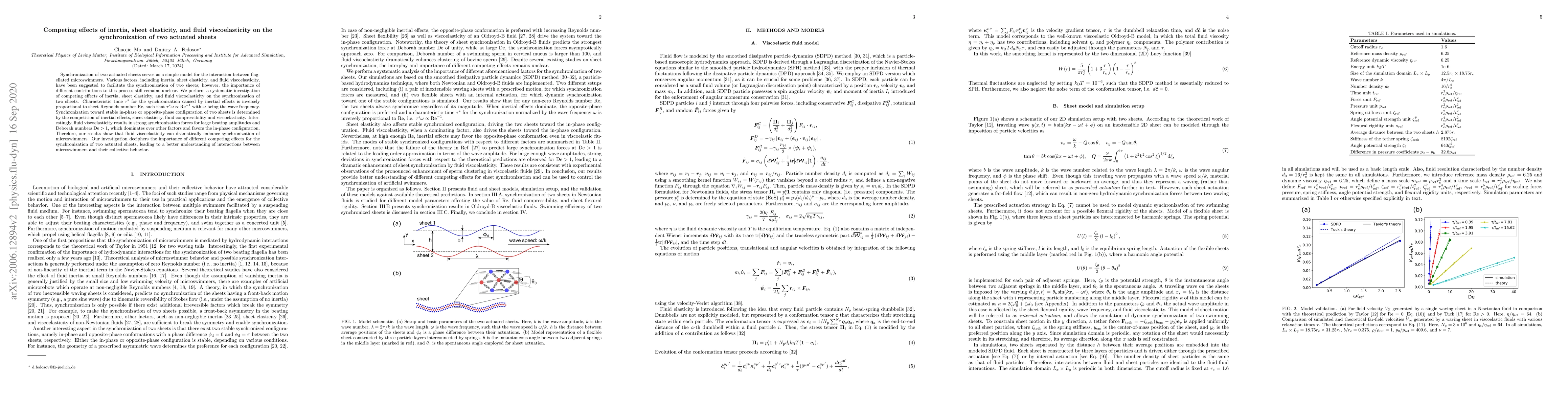 This study investigates how different factors affect the synchronization of two actuated sheets, finding that fluid viscoelasticity significantly enhances synchronization for large beating amplitudes.