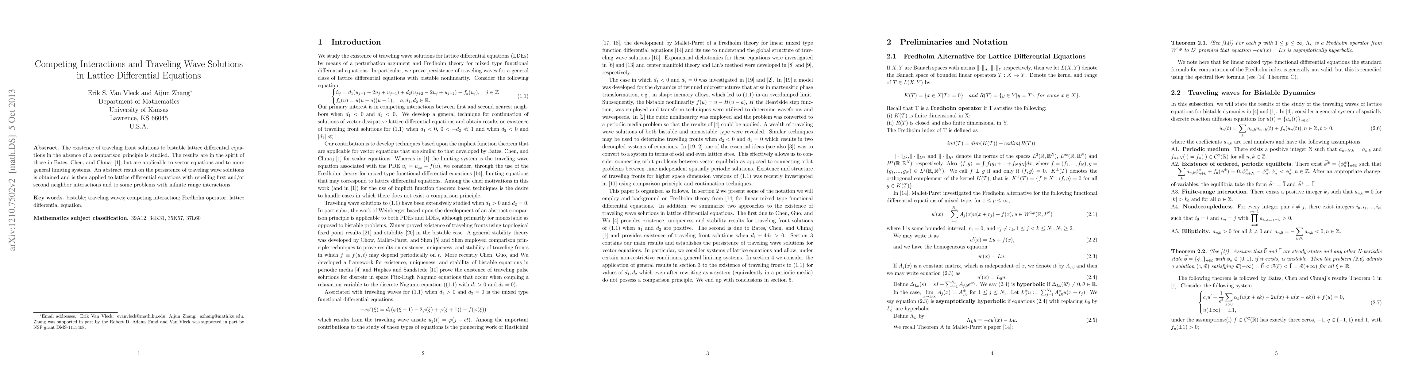The existence of traveling front solutions to bistable lattice differential equations in the absence of a comparison principle is studied. The results are in the spirit of those in Bates, Chen, and Chmaj in[1], but are applicable to vector equations and to more general limiting systems. An abstract result on the persistence of traveling wave solutions is obtained and is then applied to lattice differential equations with repelling first and/or second neighbor interactions and to some problems with infinite range interactions.