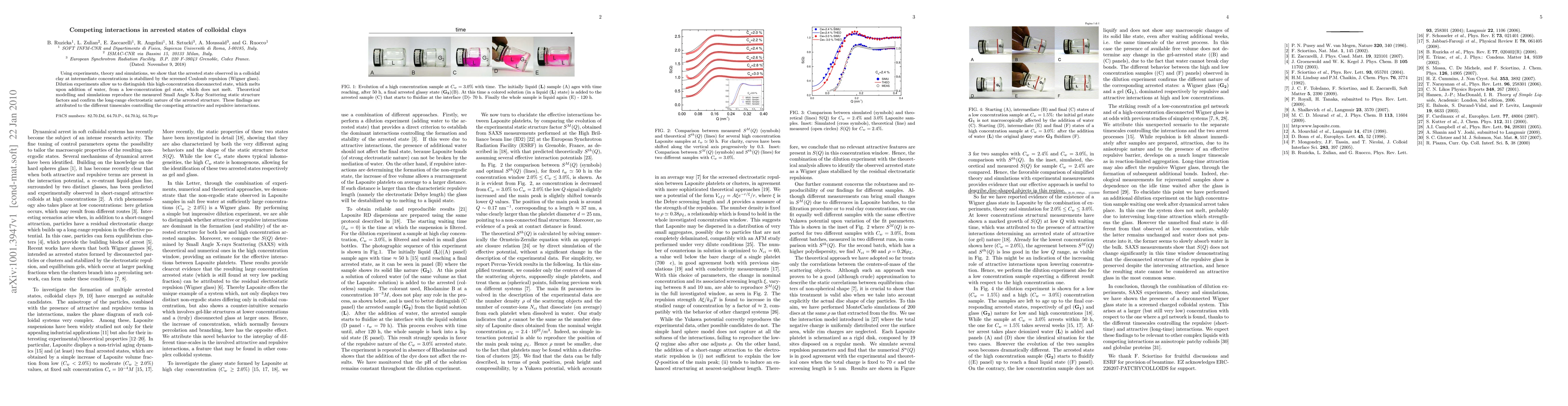 This study reveals that colloidal clays form an arrested state stabilized by screened Coulomb repulsion, termed a Wigner glass, at intermediate concentrations. Dilution experiments differentiate this state from a low-concentration gel state, with theoretical modelling and simulations supporting the electrostatic nature of the arrested structure.