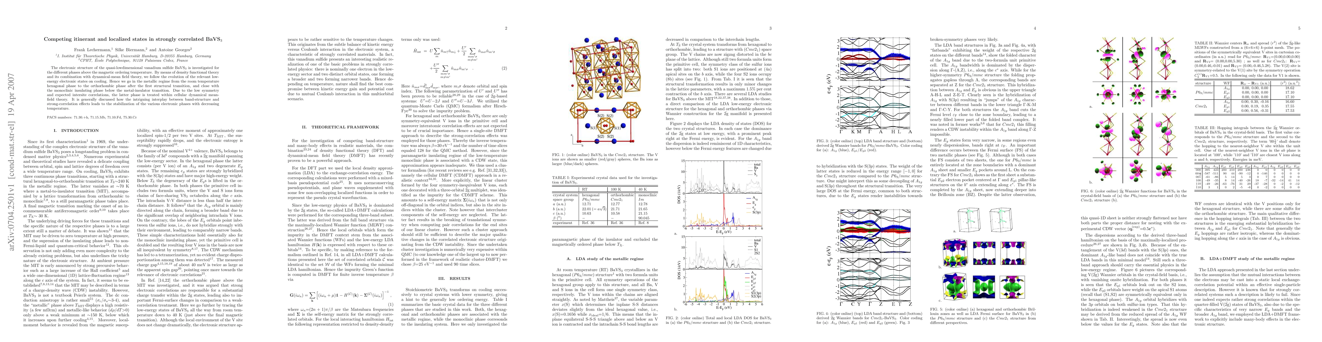 The electronic structure of the quasi-lowdimensional vanadium sulfide \bavs3 is investigated for the different phases above the magnetic ordering temperature. By means of density functional theory and its combination with dynamical-mean field theory, we follow the evolution of the relevant low-energy electronic states on cooling. Hence we go in the metallic regime from the room temperature hexagonal phase to the orthorhombic phase after the first structural transition, and close with the monoclinic insulating phase below the metal-insulator transition. Due to the low symmetry and expected intersite correlations, the latter phase is treated within cellular dynamical mean-field theory. It is generally discussed how the intriguing interplay between band-structure and strong-correlation effects leads to the stabilization of the various electronic phases with decreasing temperature.