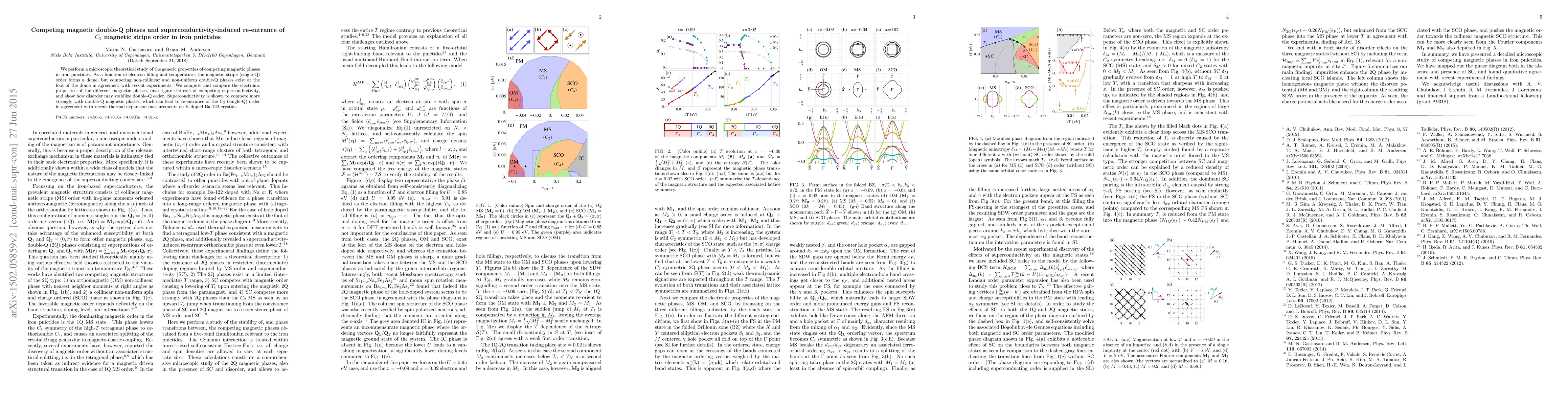 The study theoretically explores magnetic phase competition in iron pnictides, revealing that double-Q magnetic phases exist at the dome's base, consistent with recent experiments. Superconductivity competes more with these double-Q phases, potentially re-establishing single-Q order, as observed in K-doped Ba-122 crystals.