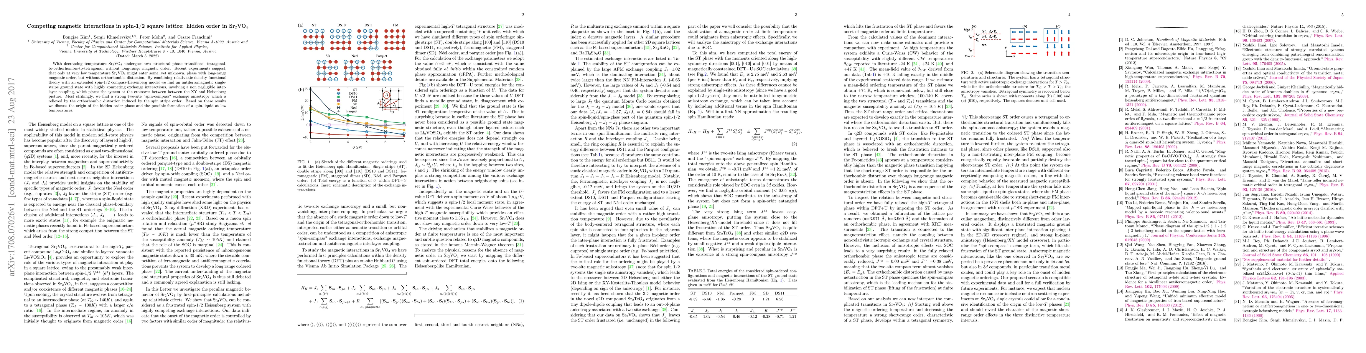 Sr$_2$VO$_4$ exhibits competing magnetic interactions leading to a complex antiferromagnetic single-stripe ground state, suggesting a hidden order phase at very low temperatures without orthorhombic distortion, and possibly hinting at spin-liquid formation. Theoretical models reveal strong spin-compass exchange anisotropy relieved by structural distortions.
