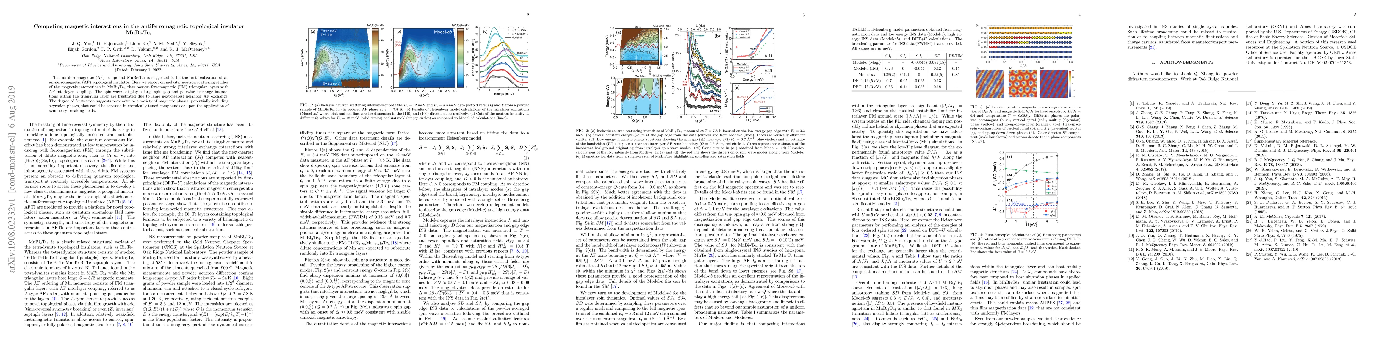 This paper investigates the magnetic interactions in the antiferromagnetic topological insulator MnBi$_{2}$Te$_{4}$, revealing complex competing interactions within ferromagnetic triangular layers and antiferromagnetic interlayer coupling. The study suggests potential for accessing diverse magnetic phases through chemical tuning or external fields.